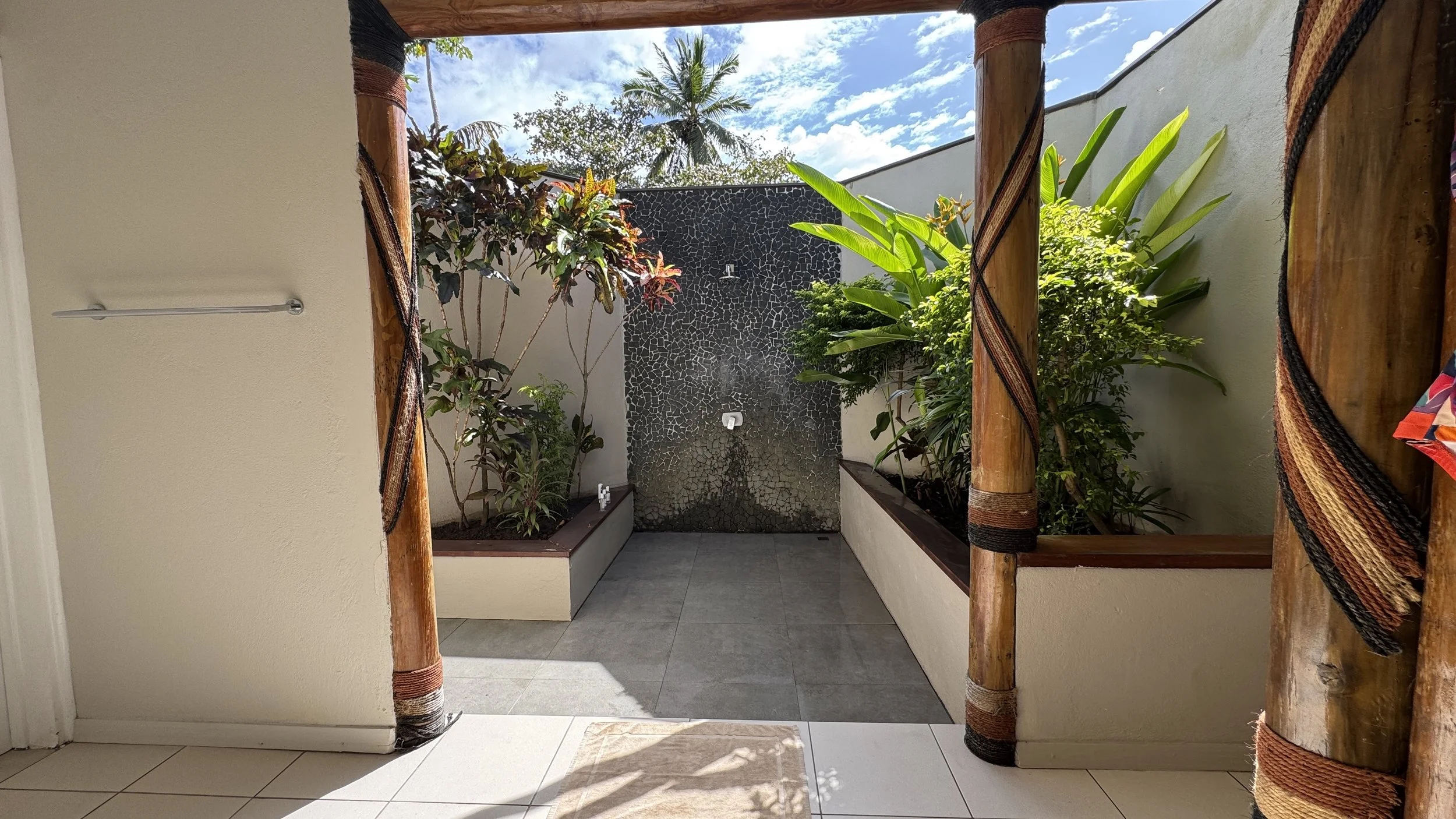 We were excited having a spacious outdoor bathroom, with a beautiful outdoor shower, surrounded by flowering plants that attracted many butterflies.