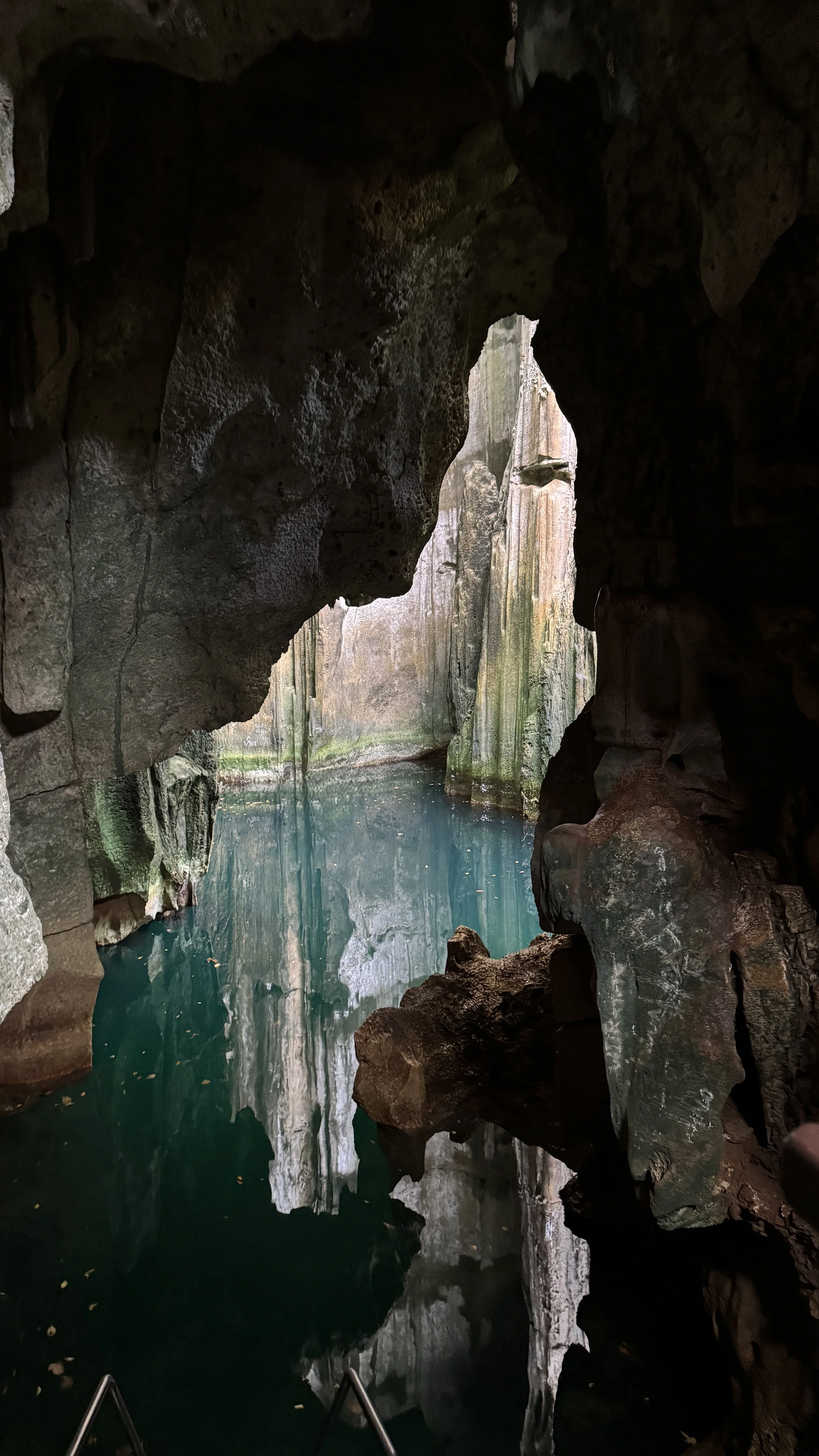 We first swam the scenic outer cave which was open to daylight where the famous cave scene was filmed. Then we had some excitement as we were challenged to hold our breath and swim underwater (with a dive mask) through a narrow passage, just to emerge after a few short feet on the other side in a pitch-black, second cave. Fortunately, our guide steered us to safety with a flashlight. The reverberation of our voices in the fully enclosed chamber sounded chaotic and discordant. We, of course, had to swim back the same way, which was not any less heart-pounding.