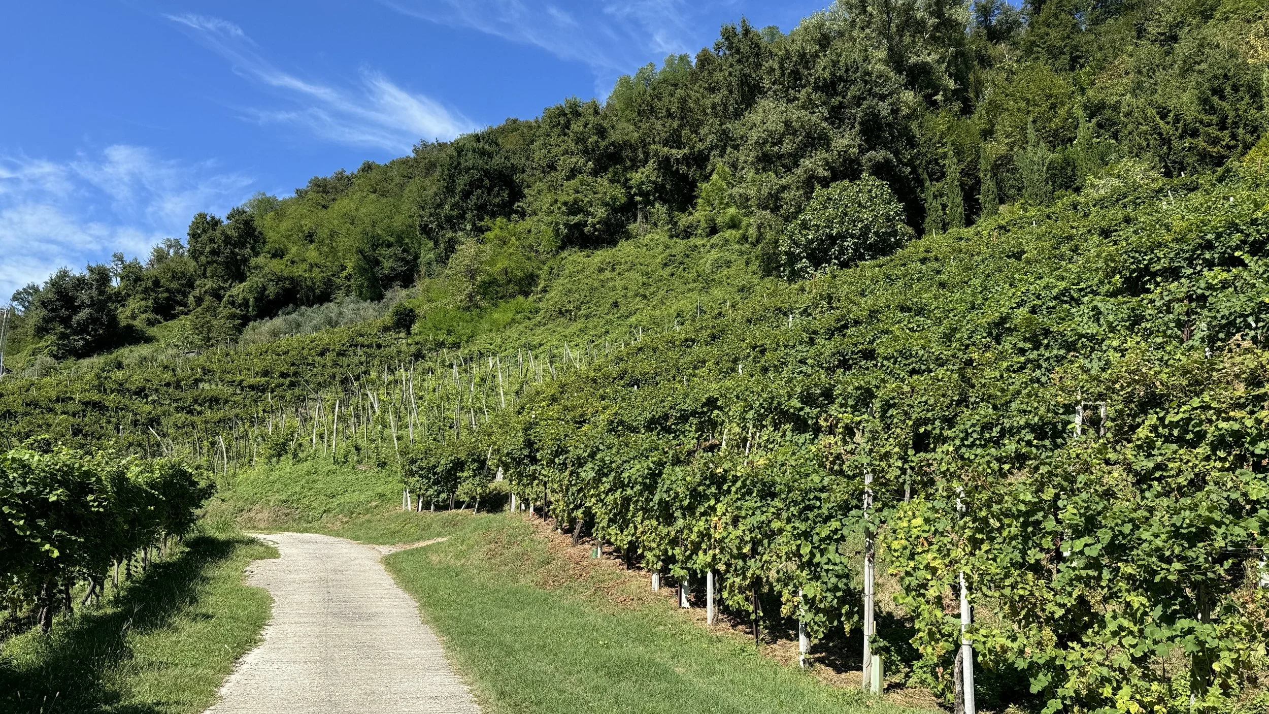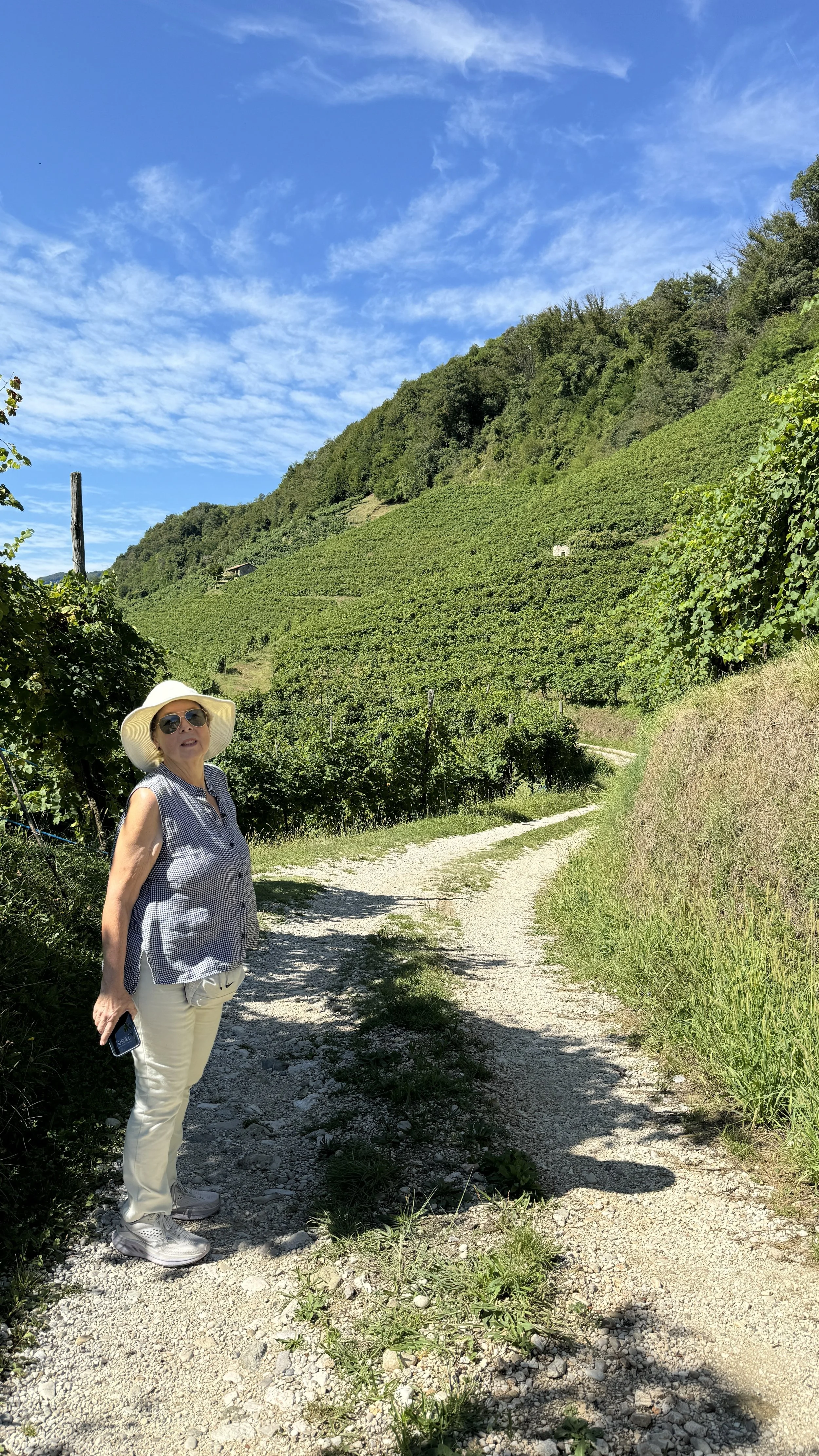 We followed a recommended hike through the foothills and along the vineyards that brought us into the heart of Prosecco country. Fields of ripening white Glera grapes surrounded us as we climbed a narrow path towards our destination, an Osteria in a neighboring village. After all, hiking was the theme of our vacation.