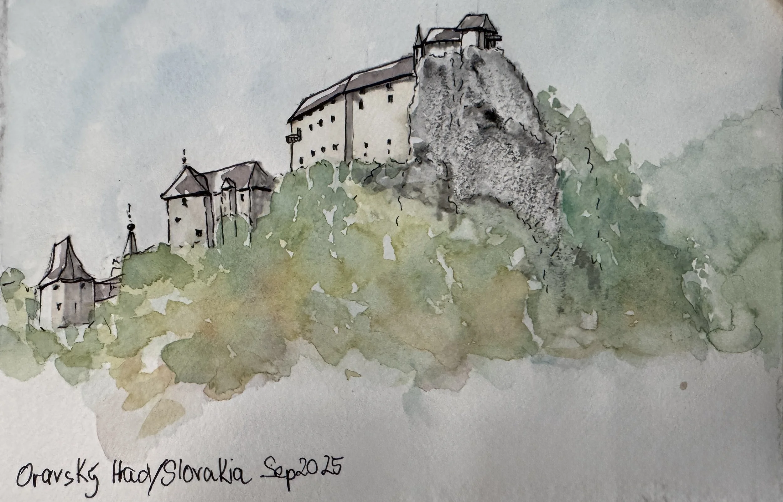 Gitty opted to sketch Orava Castle from several perspectives rather than conquer the 666 steps leading to the upper balcony views of the beautiful surrounding landscape.