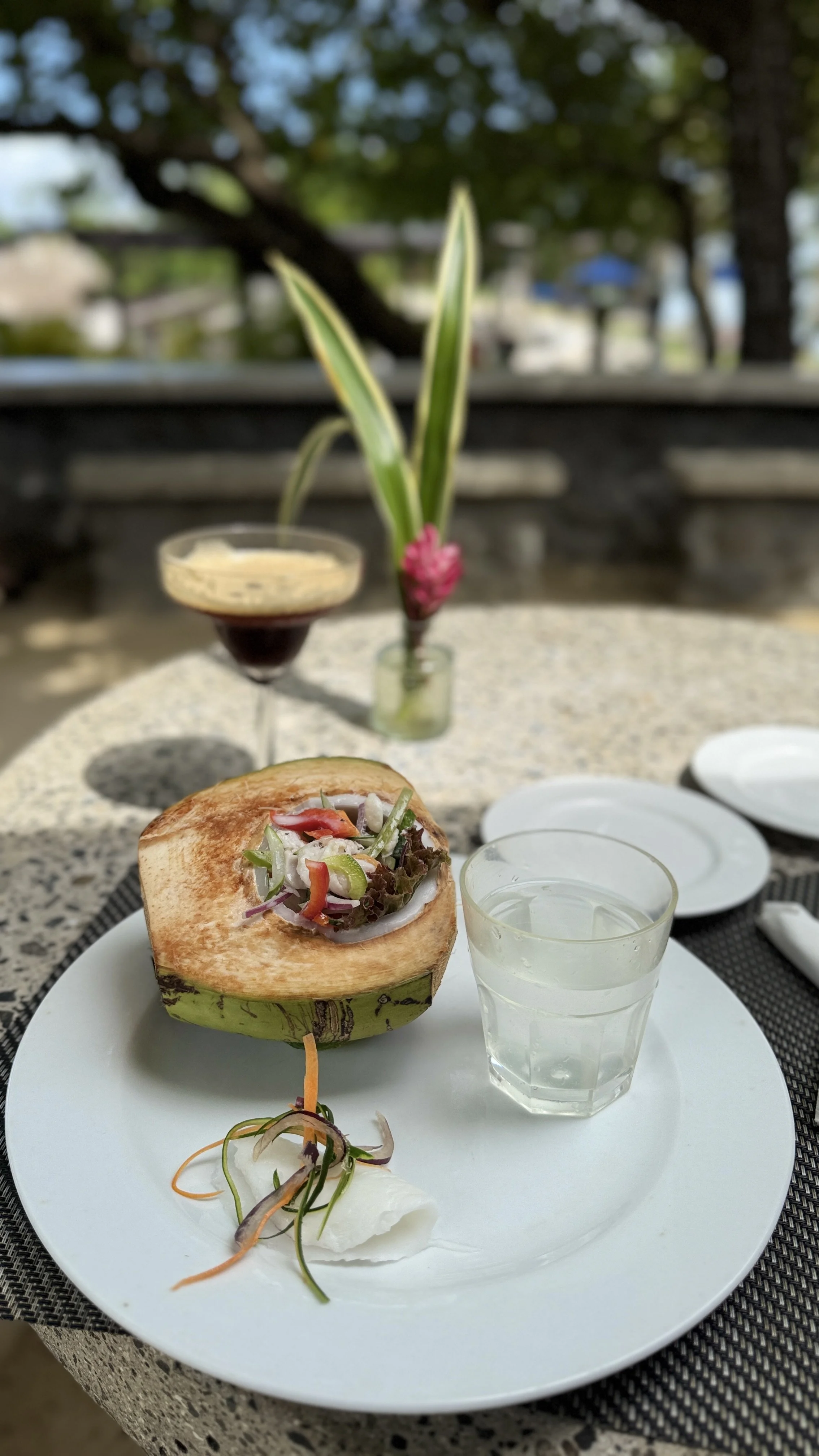 The most incredible ceviche served in a coconut shell with a shot of coconut water, yummy!