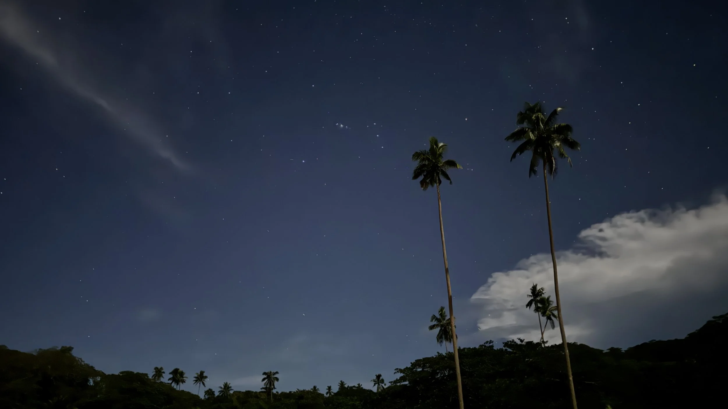 Orion’s Belt constellation and palm trees at Koro Sun resort