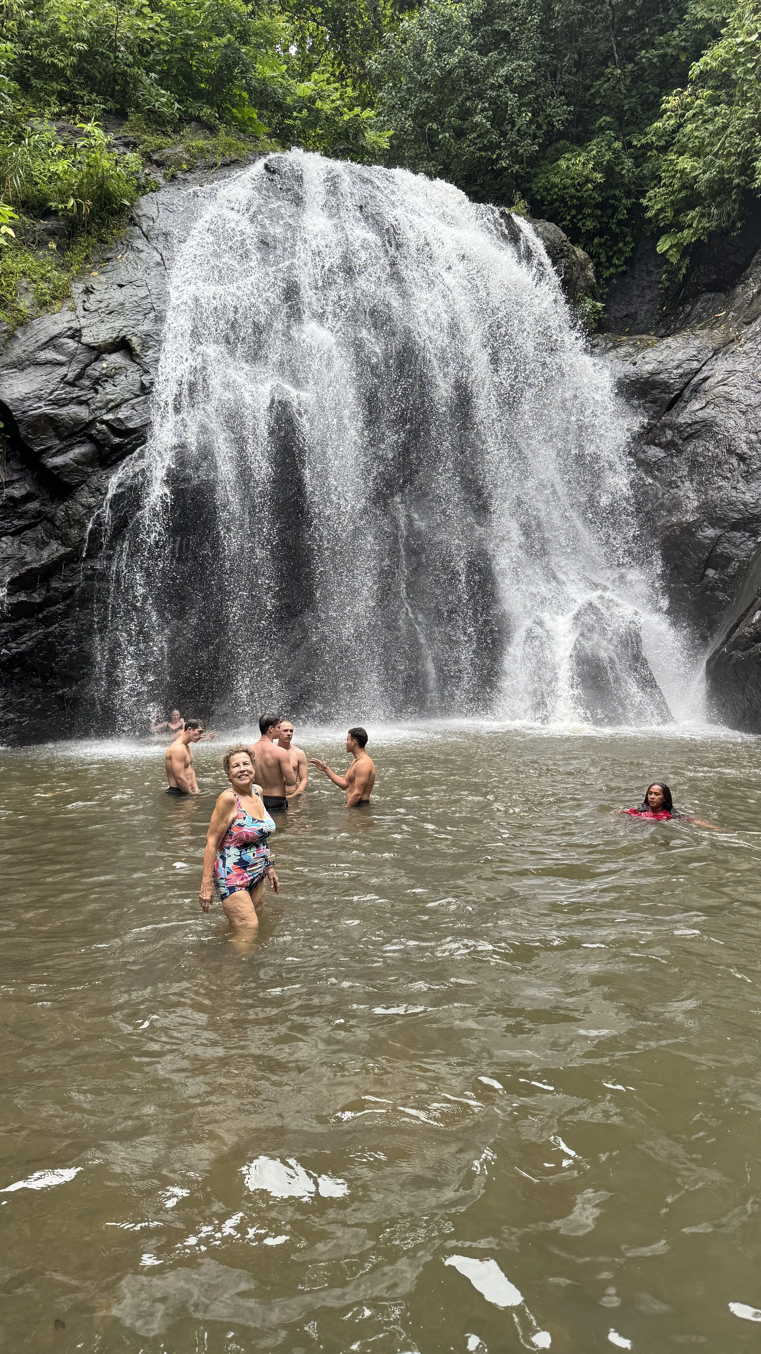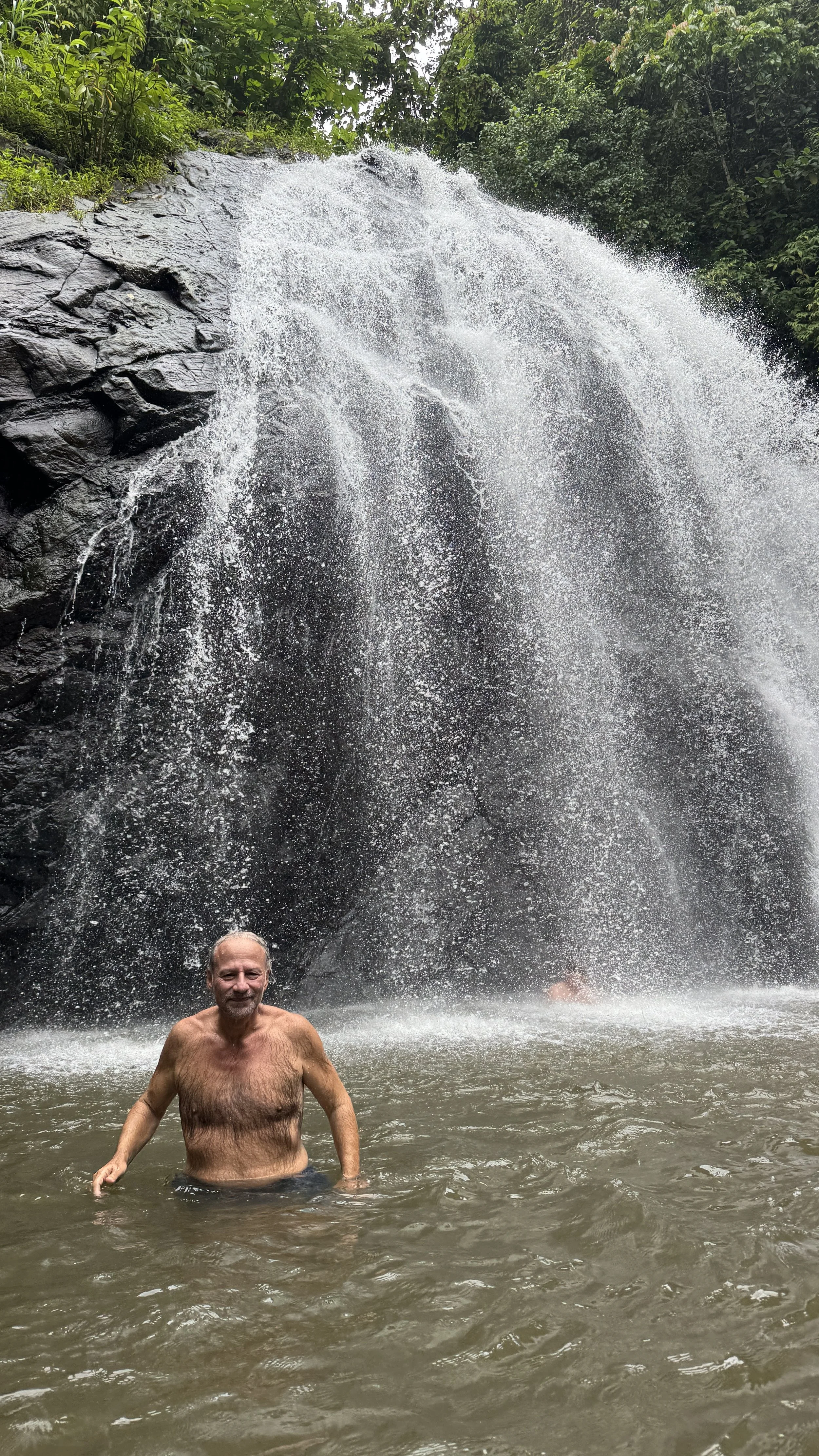 We visited a natural waterslide down a flowing river (Randy could not pass up the opportunity to try that out), and another, even more beautiful, tall-waterfall-fed lake to swim in. This one had a wall of green plants and was literally bigger, better, and more beautiful than the earlier waterfall.