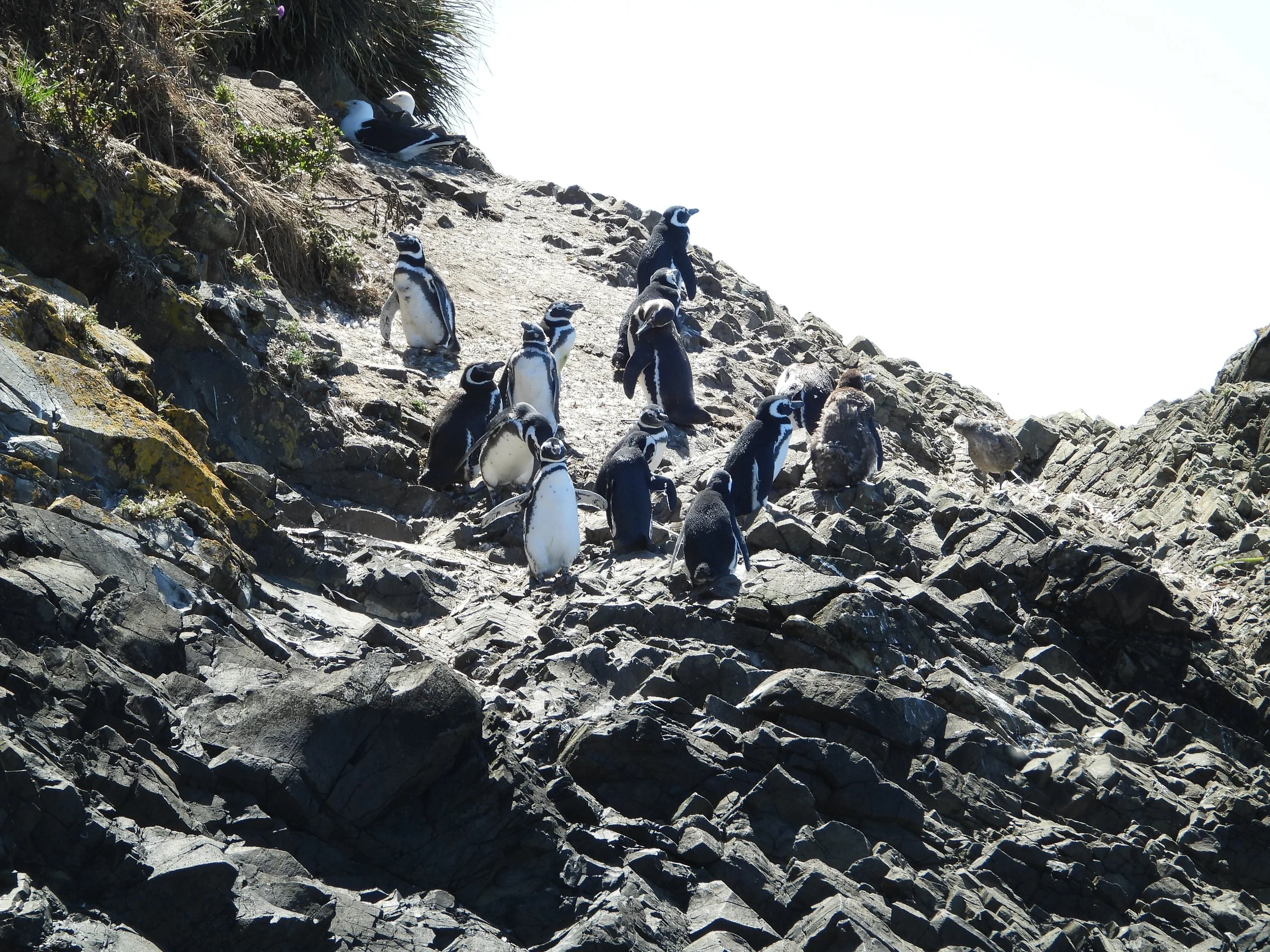 The tour was in Spanish, so we caught only fragments of the commentary, but the experience was still fun. We motored to several small islands, spotting two different species, Humboldt and Magellanic penguins, as well as endemic cormorants and ducks. The weather cooperated completely, a blue sky and the scent of the sea on the Patagonian wind. We sympathized with these poor penguins hopping around on the rocky islets while boats disrupted their peace.