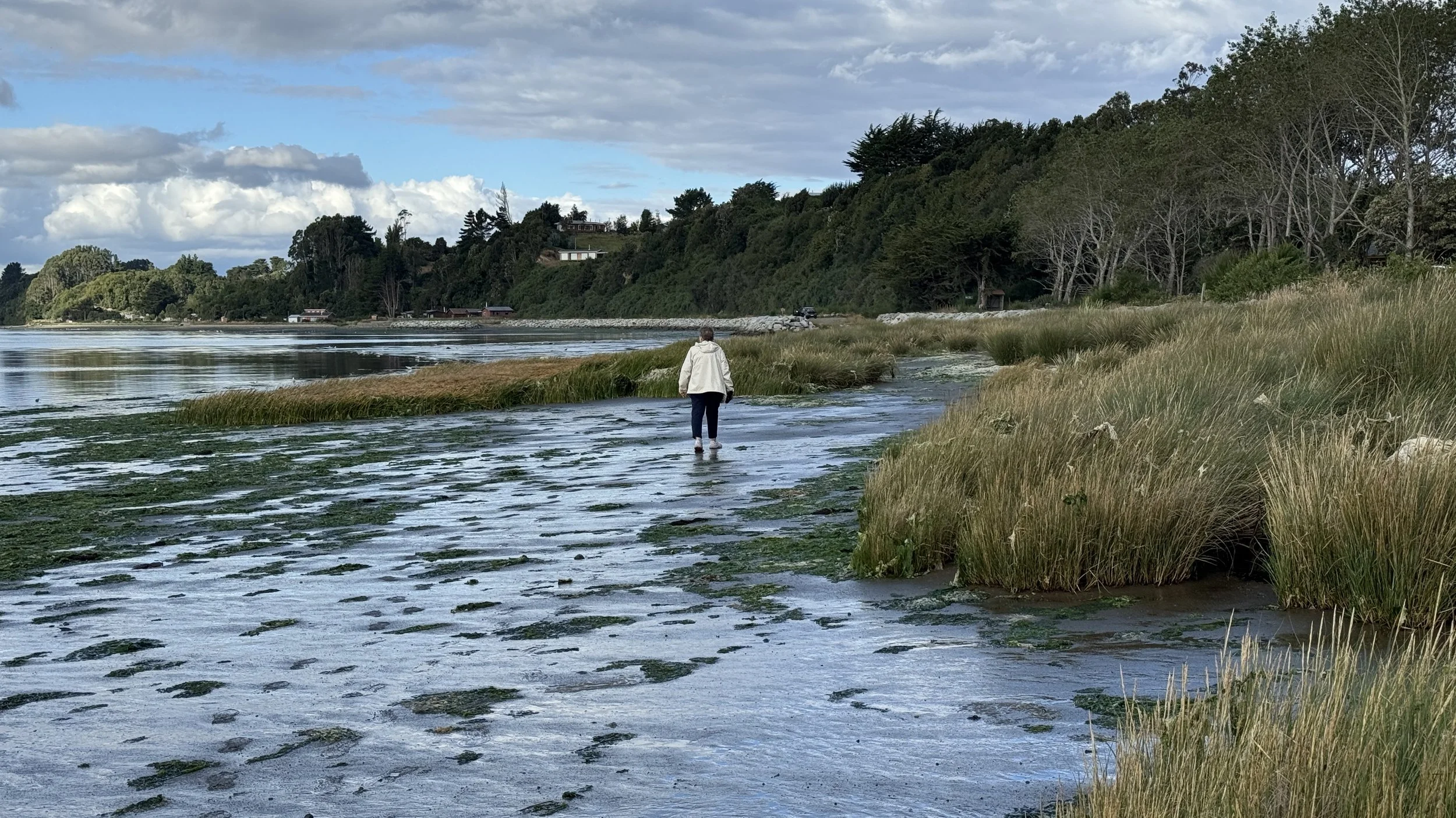 After the tour, we continued driving along the coast to Caulín Bay, a quiet cove designated as a habitat zone and a birding hotspot. Time slipped away as we scanned the shoreline for Chiimangos, Whimbrels, Terns, Sandpipers, and Snipes, walking along the beach and relocating to several vantage points. Eventually, the road curved inland, and the coastline we’d been following disappeared. The drive back to the ferry passed quickly, and soon we were crossing again to the mainland, bound for Puerto Varas.