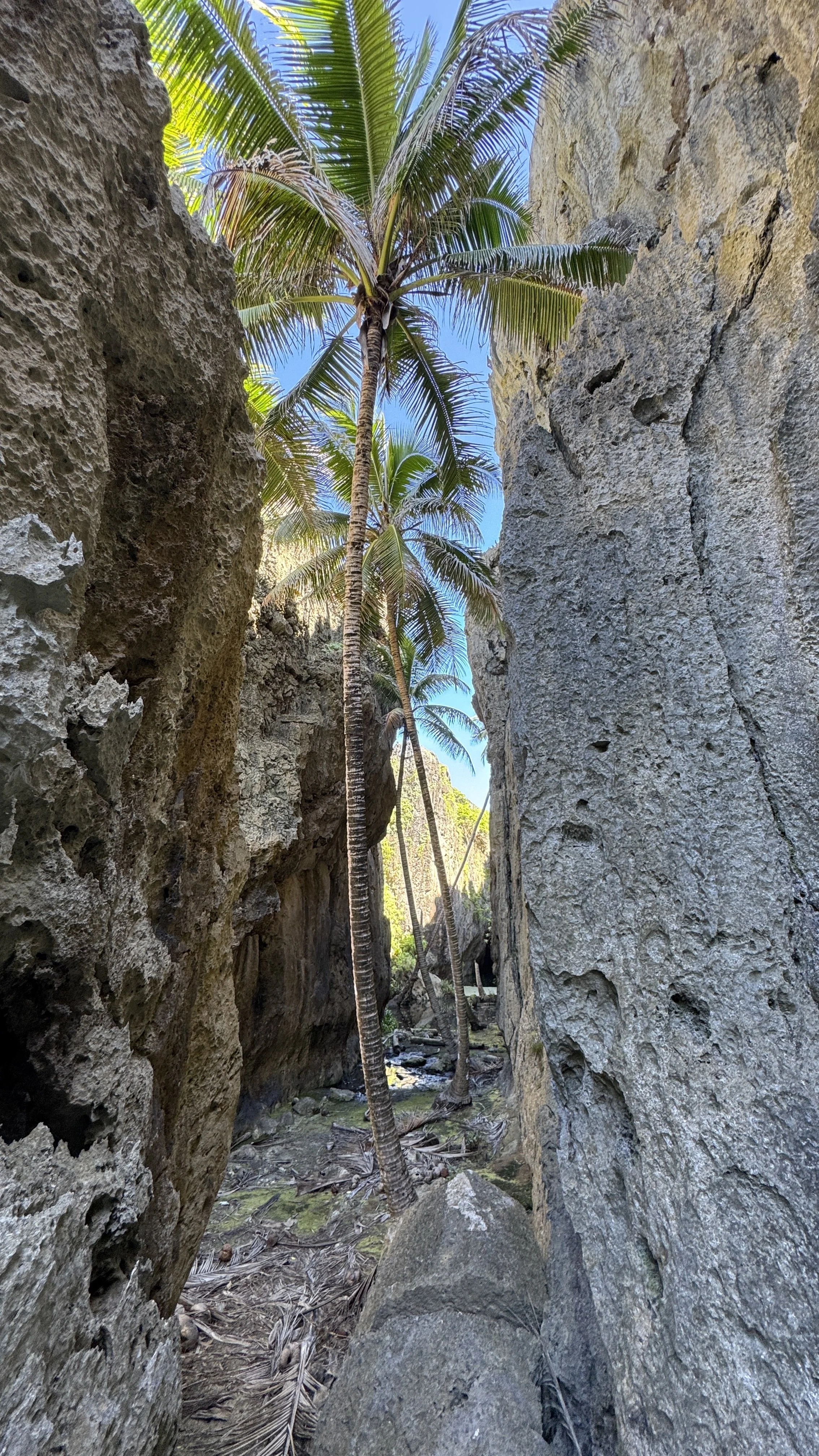 A landscape of jagged coral pinnacles on the way to Togo chasm