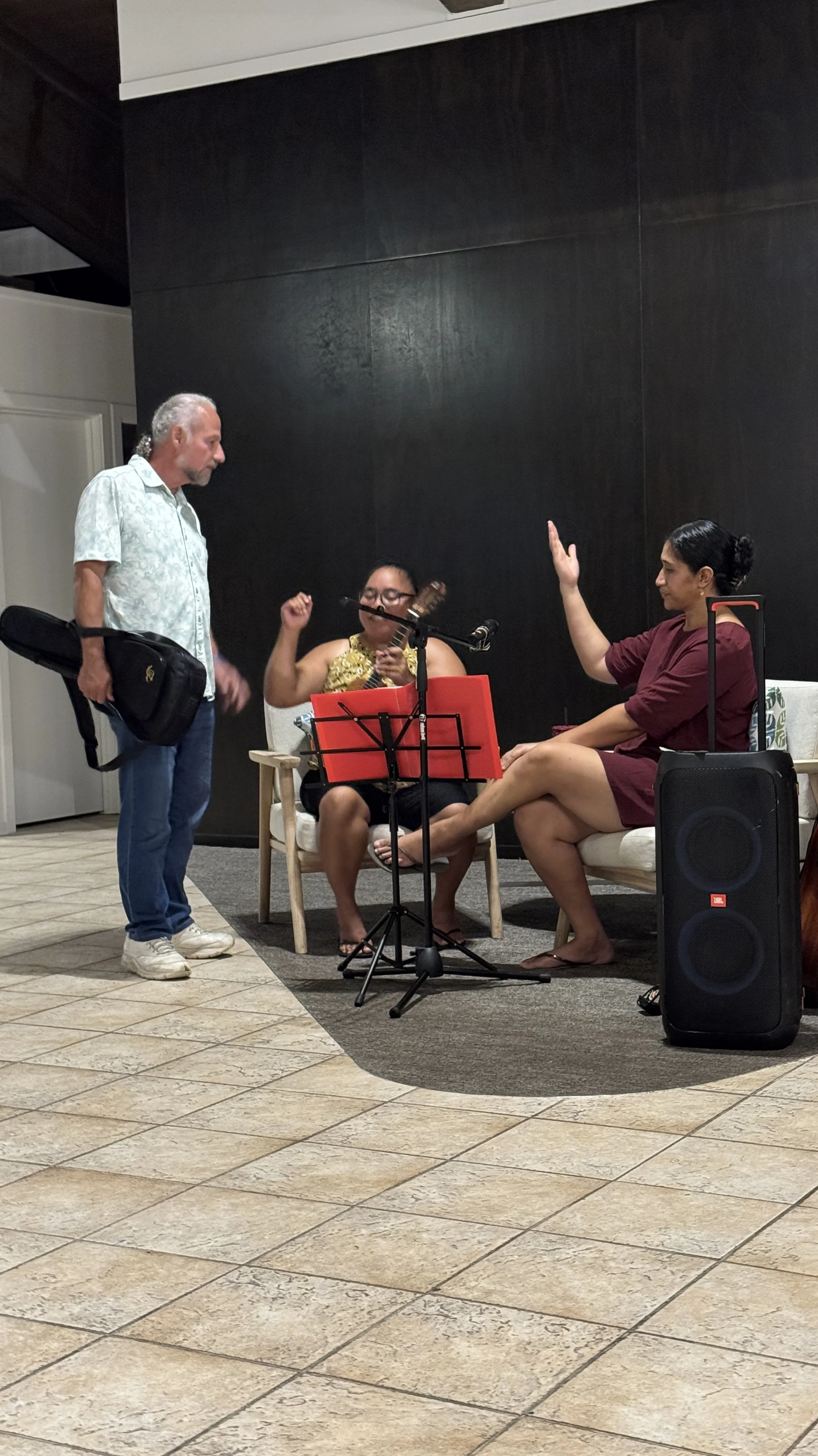 Taking ukulele tips from local artists Daphne and Marina who specialize in Niue language songs