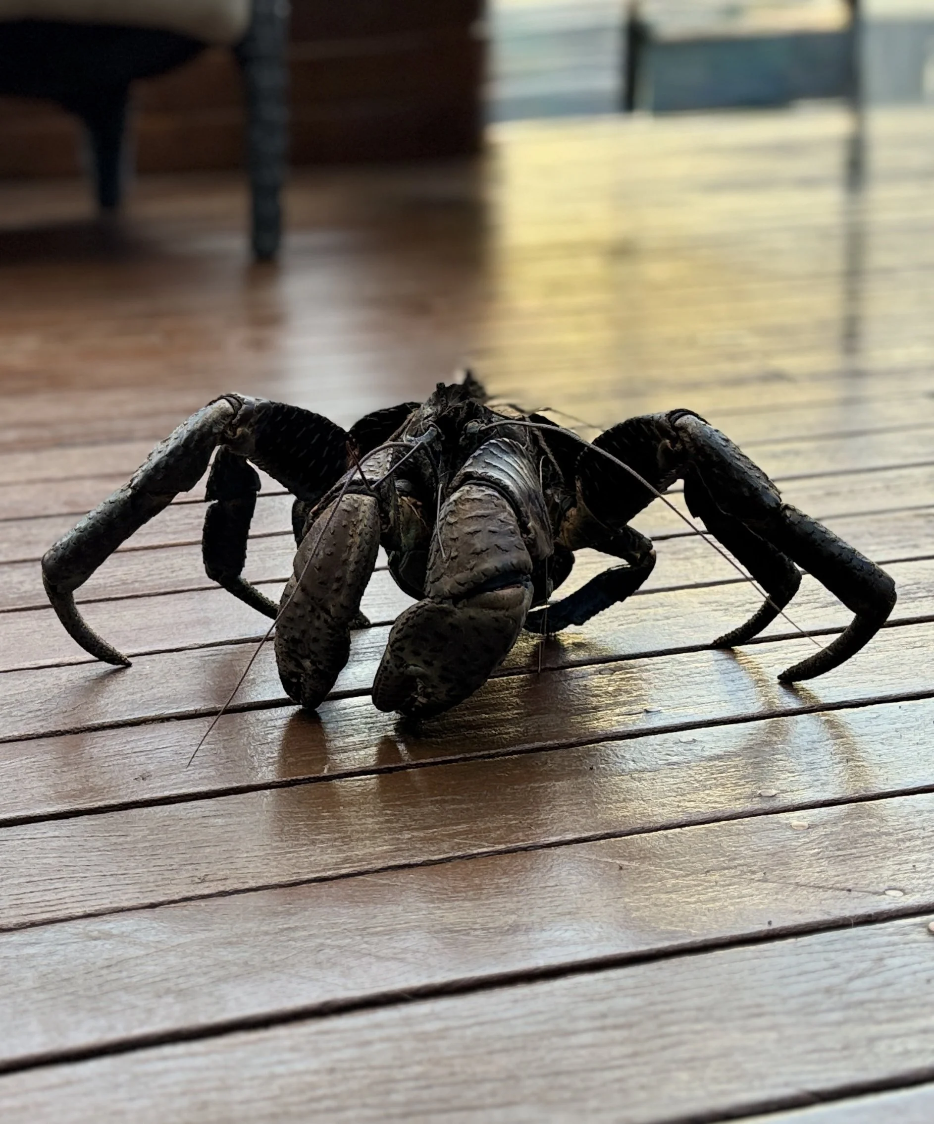 On the island are living giant crabs called Uga who also love to feed on coconuts although their diet does include fruits and smaller critters. They hunt predominantly at night and are considered a delicacy cooked like lobster and offered on special occasions like birthdays, anniversaries and weddings. More meaty than lobster, they taste mildly of coconut and are rather scrumptuous.