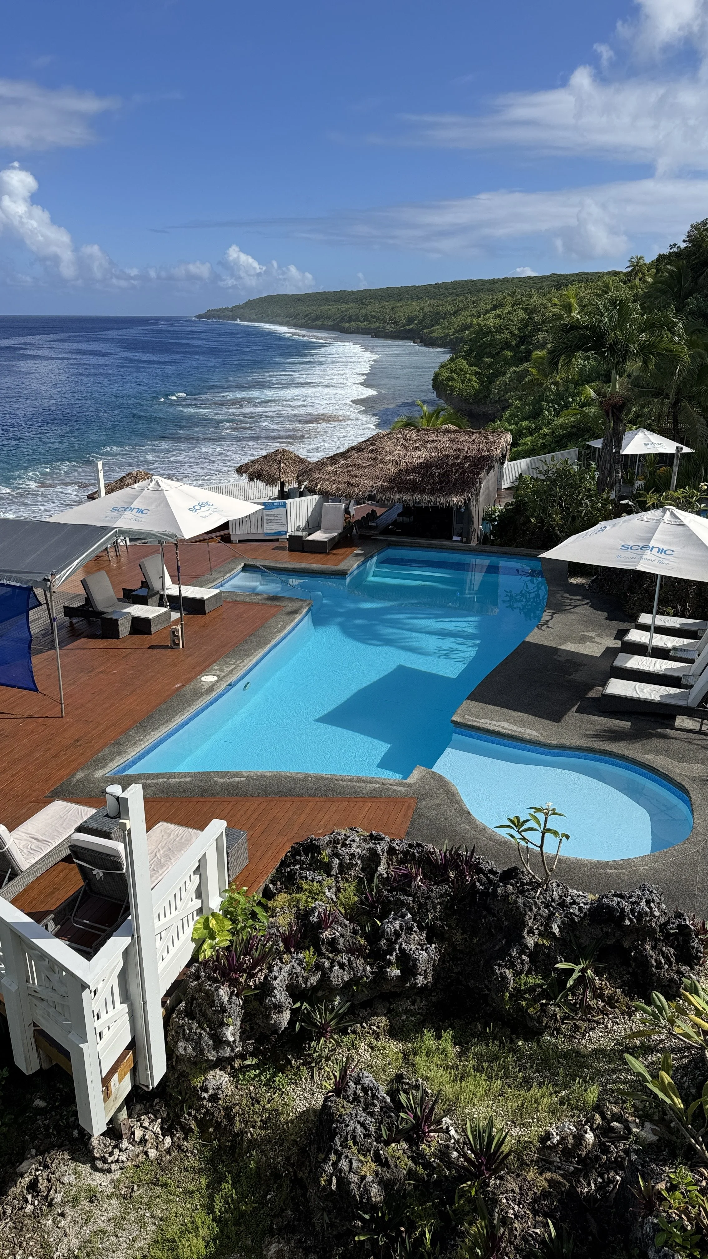We stayed at the Scenic Matavai Resort, the only one on the island. The resort is owned by the people of Niue and all profits from there go to the islanders. From our room, we fell asleep to the soothing susurrus of the ocean waves below crashing against the limestone cliffs, a constant whooshing of breaking waves as mesmerizing to watch as it is to hear.