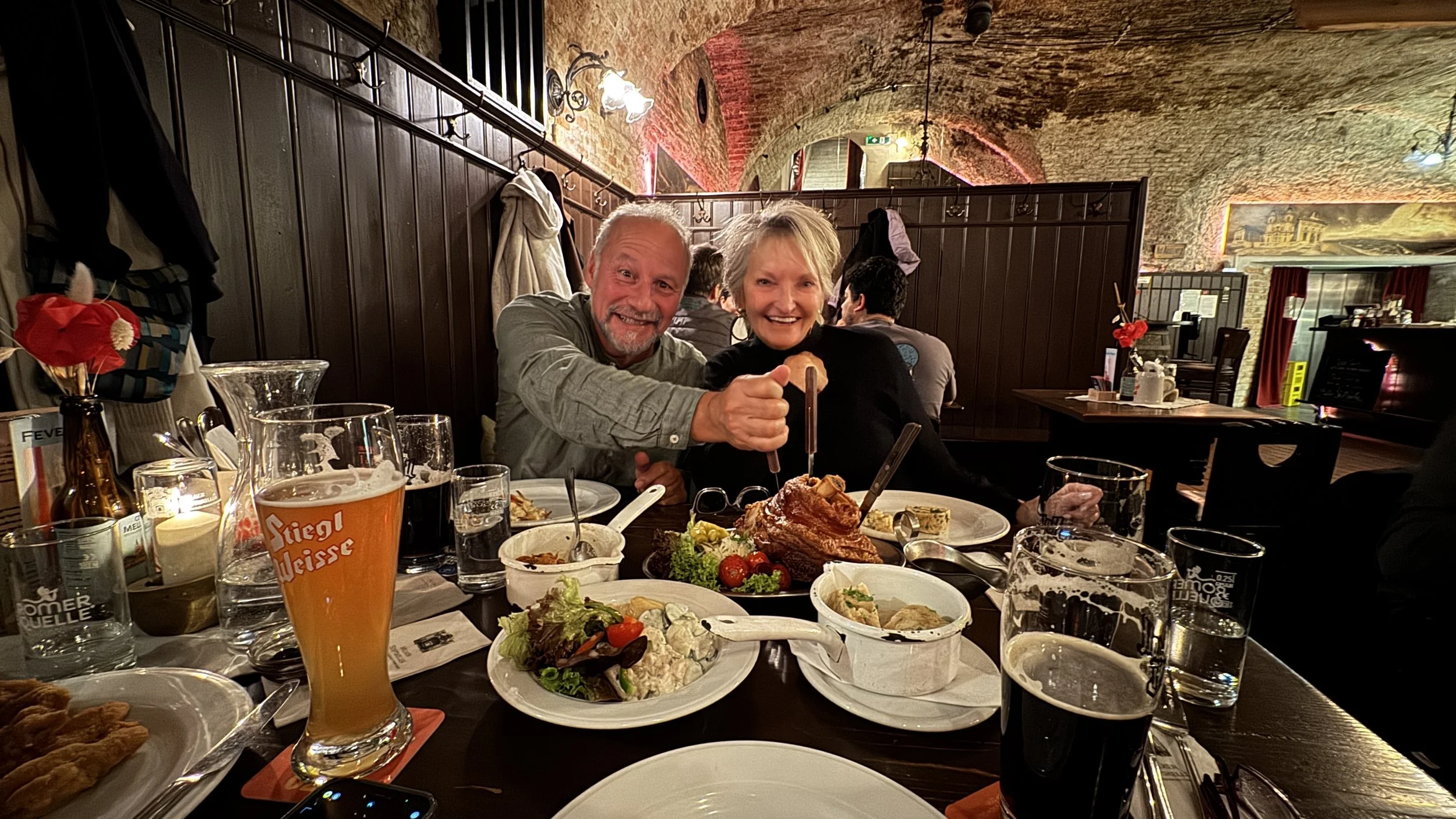 One elegant evening, Randy and Paula attended a performance of Il barbiere di Siviglia (The Barber of Seville) by Rossini at the Wiener Staatsoper (Vienna State Opera House), a magnificent building in the Neo-Renaissance style. Otherwise, we indulged in classic Austrian dishes from Wiener Schnitzel (Doug 3 times), Cordon Bleu, Gulasch with Serviettenknödel, Kaiserschmarrn, Apfelstrudel (Doug 4 times) with Vanilla sauce, and many other dishes whose names I can’t recall, to the biggest of all, a special wish from Paula, which was an enormous Schweinshaxn (pork knuckle) we all shared.