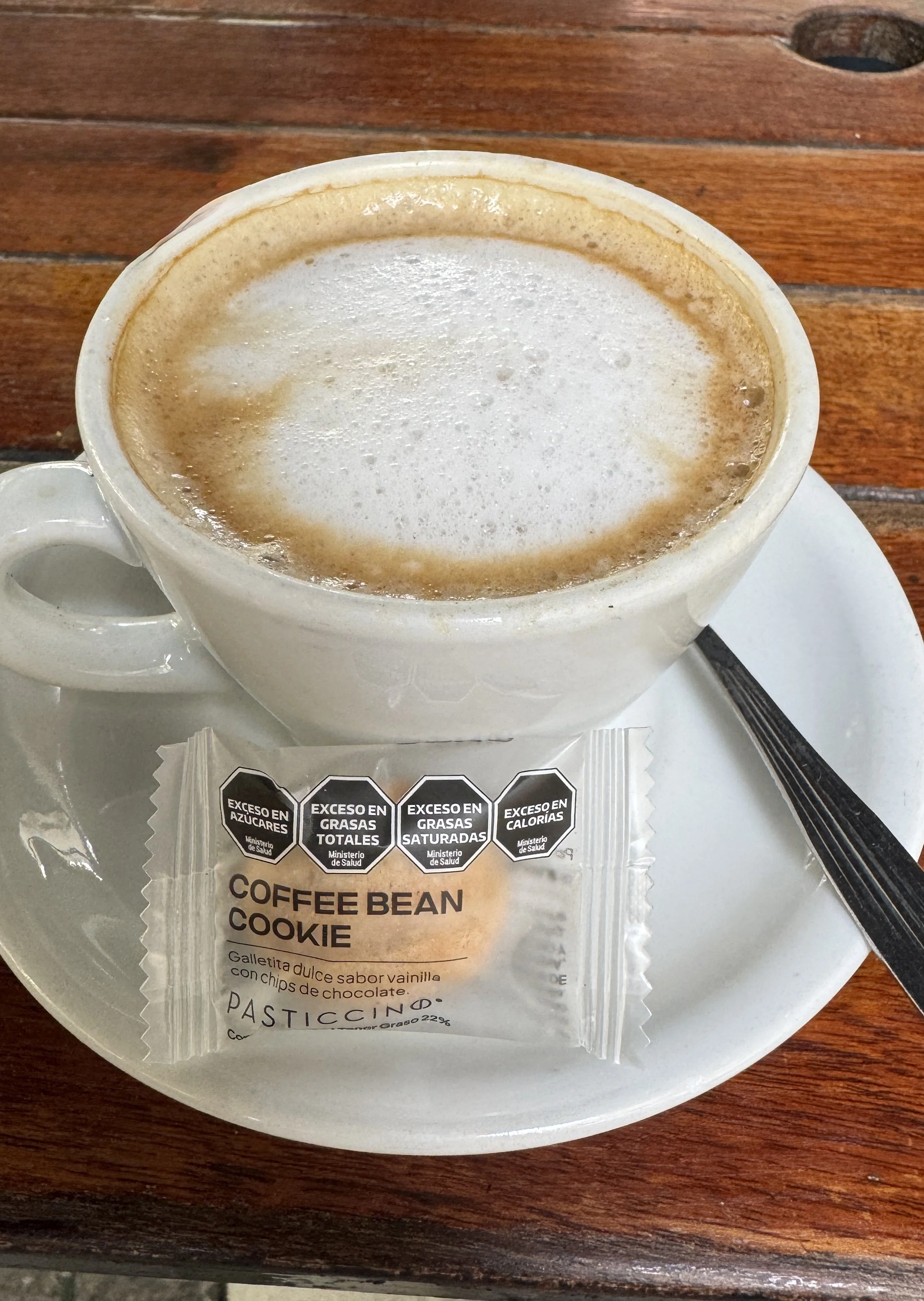 On every packaged food are government warnings: excessive sugar, excessive fat, excessive saturated fat, and excessive calories (like in this little coffee cookie)
