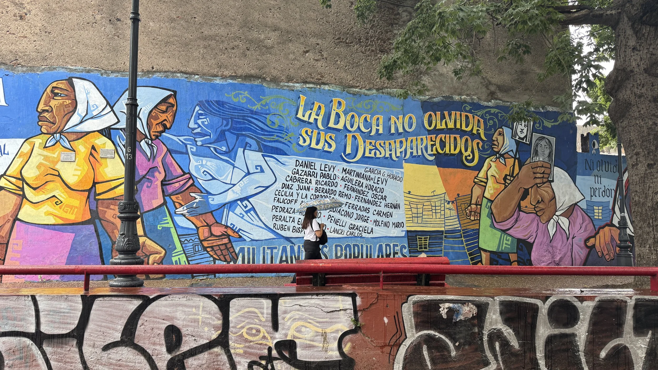 This mural depicts the "Desaparecidos” (disappeared) during the 70’s “Dirty War” against activists, students, and journalists