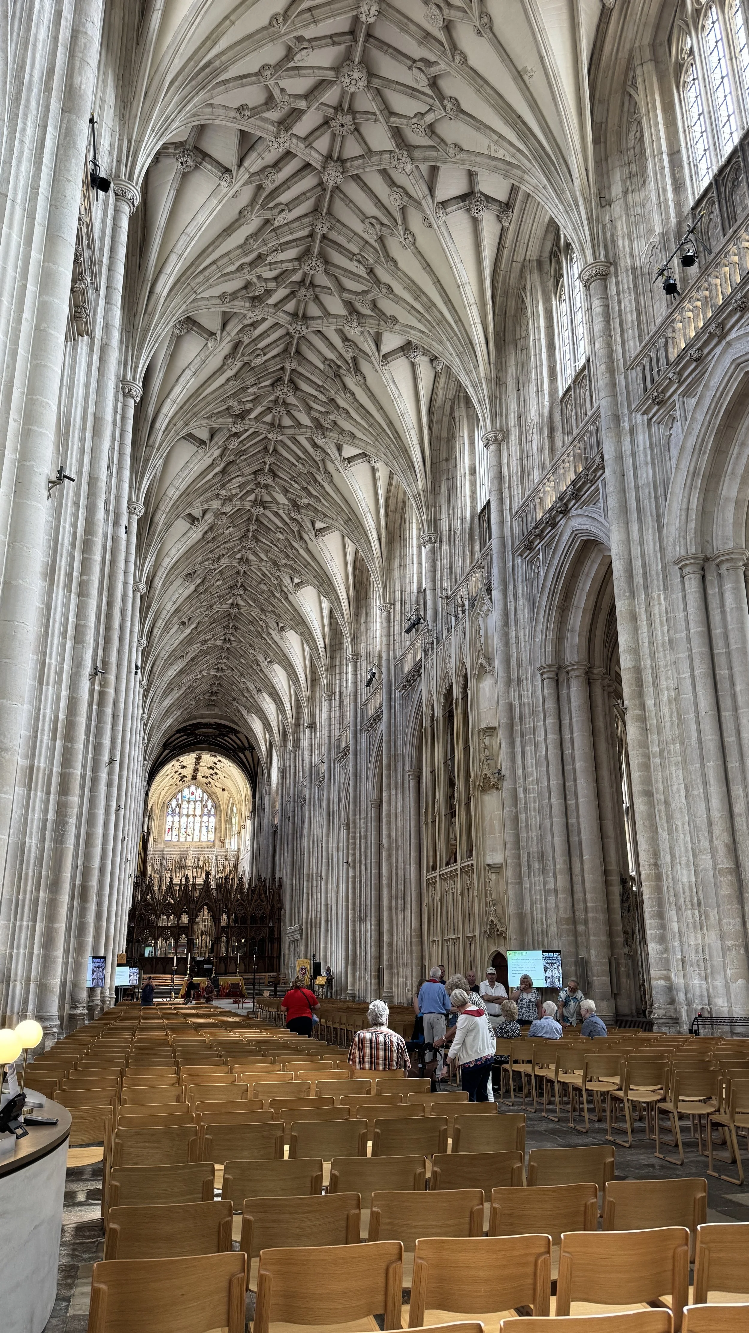 The cathedral needed renovation hundreds of years later due to the fact that it was built … on marshland. Fortunately, prosperity and changing fashion over time (Norman/Viking : out, Gothic : in), the cathedral as it stands today is an impressive edifice with stunning visuals and fascinating history. Along the left side of the Nave after entering the cathedral, we stumbled upon Jane Austin’s gravestone. As this year is her 250th anniversary, there is much ado about her happening all over England.