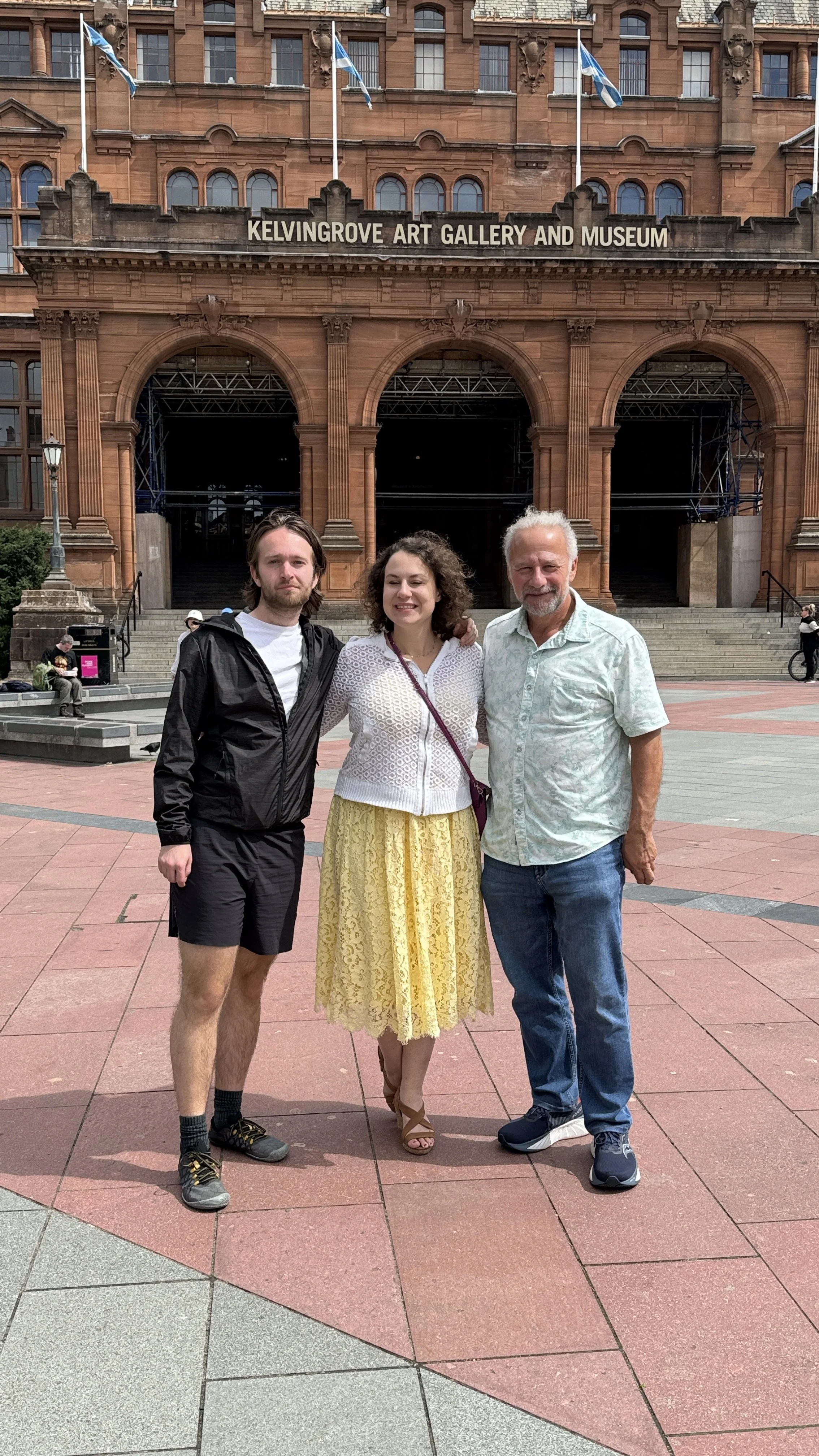 In Glasgow, in an Escape Room (an entertainment that our family enjoys since many years), we found ourselves handcuffed to the walls of a mad doctor’s lab with at most one hour to free ourselves or suffer the consequences. We escaped unharmed to no one’s surprise and also unsurprisingly in record time with Jyl and Alex on our side. Also in Glasgow, we celebrated my birthday at an excellent restaurant and we visited the Kelvingrove Museum, which was highly fascinating for all of us, everyone heading into different sections of Scottish history. Gitty, for example, loved the exhibits and information about the painter group “The Glasgow Boys” from the early 20th century and the artists and furniture makers Charles Rennie Mackintosh and the MacDonald Sisters.