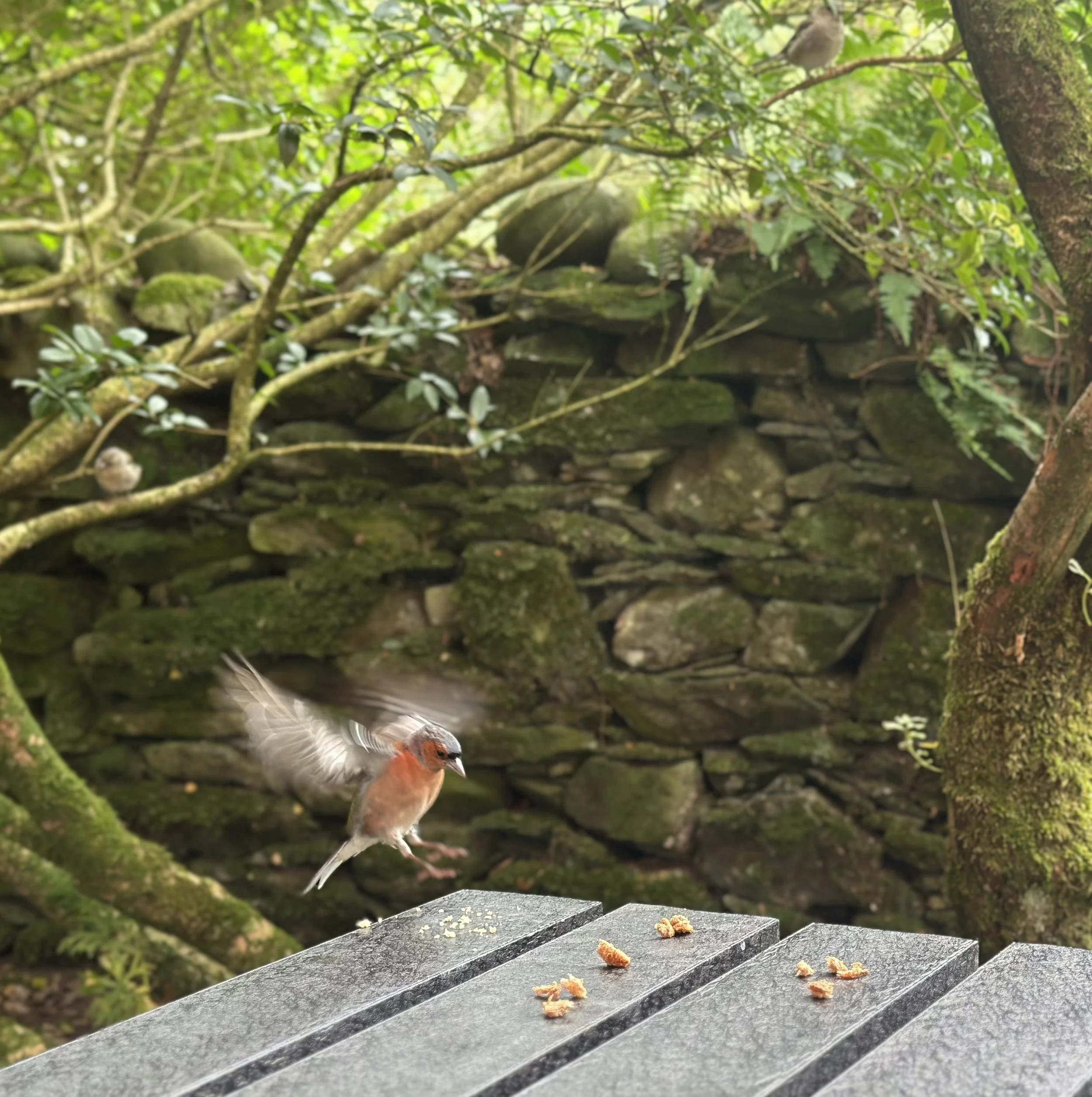 Back at Jyl’s terraced house (that’s what they call rowhouses) we enjoyed helping with gardening: first shopping for lots of plants, then prepping the overgrown areas for planting and then, yes, the planting of a lot of flowerful bee-friendly plants. Including a bird feeder, which was immediately visited by English robins, chaffinches and several tits. We were not only missing the cooking, but also the gardening, so we were all happy about our involvement there.