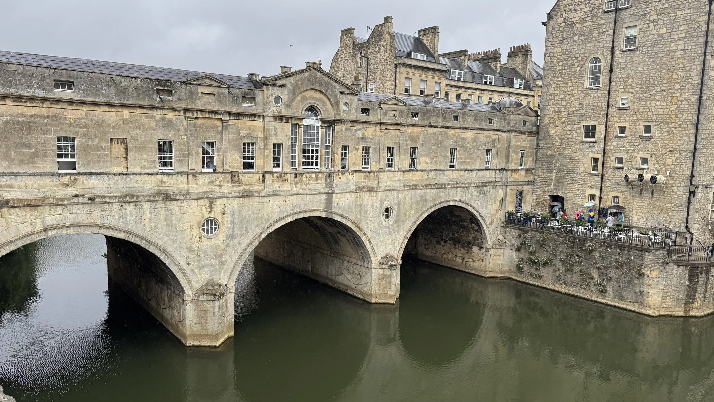 Pulteney Bridge in Bath, built in 1770, is one of only four bridges in the world lined with shops