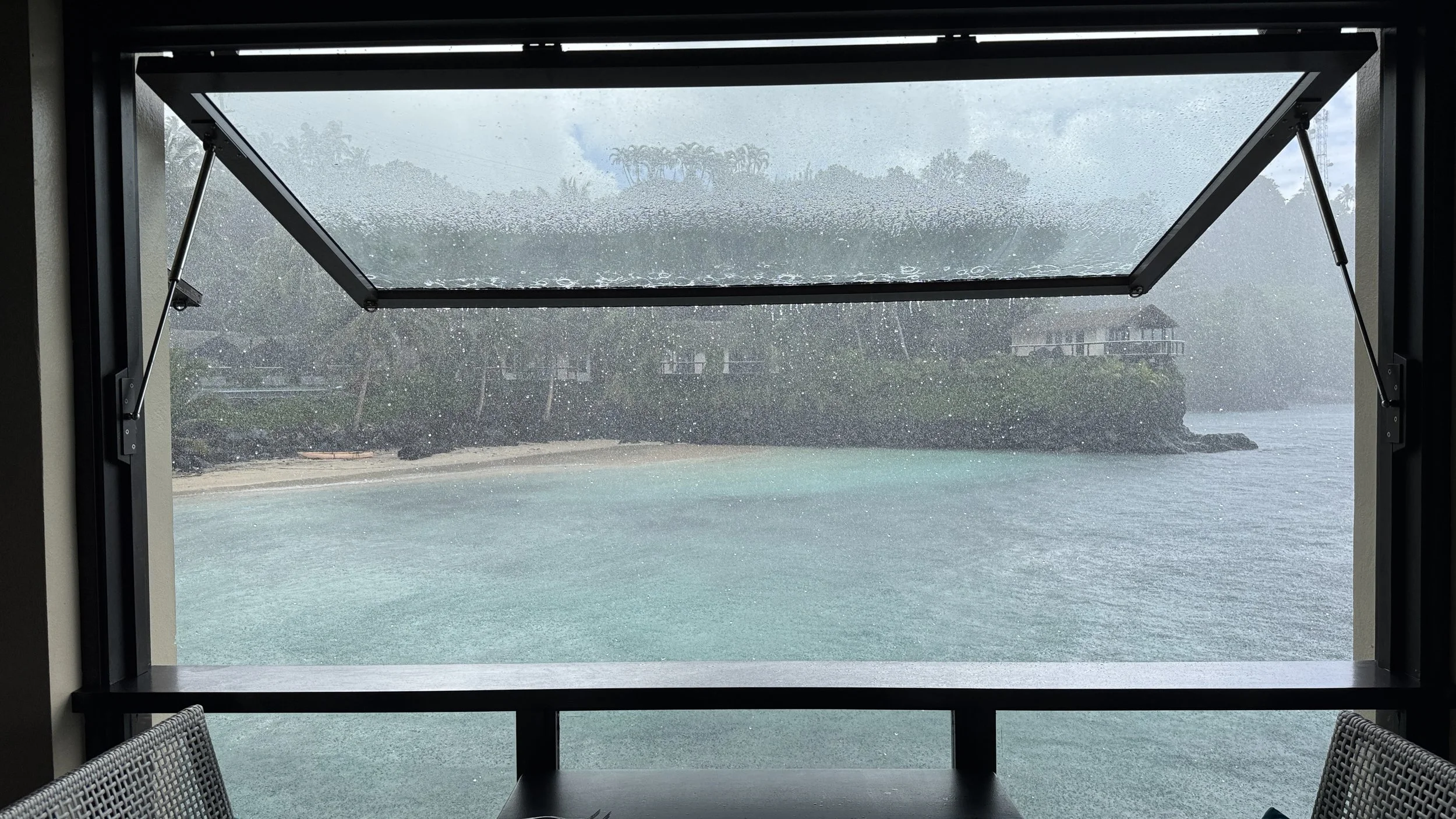 Walking deep into any island, along narrow paths surrounded by dense vegetation on both sides, we arrive at beautiful waterfalls — but the corridor along the way is still teeming with all kinds of hungry mosquitoes. Rooms have mosquito netting on the windows, but every restaurant is outside, usually only covered and protected from rain and wind. And remember, breakfast and dinner are just when the mosquitos like to eat. Flies prefer daytime and were abundant and aggressive at both Tonga locations – very annoying, but gusty winds even keep them at bay.