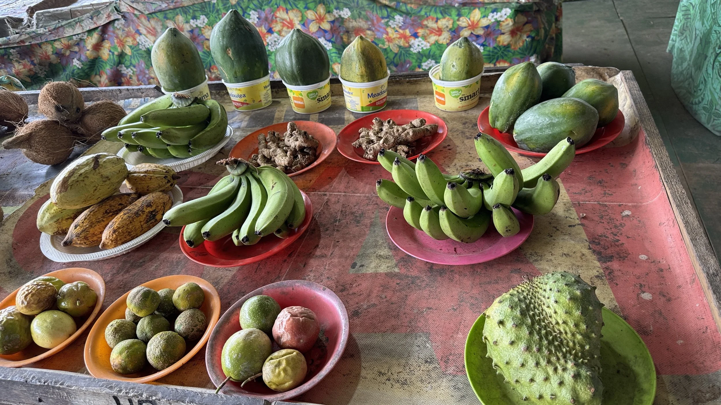 We liked very much the local cuisine with taro (root vegetable) and cassava (root vegetable) and breadfruit (growing on trees) in many variations (mostly used like potatoes as fries, mash, chips), lettuce from the garden patches and fresh fish (baked, fried, cakes, cured in lime and coconut, sashimi (raw fish), ceviche-like), caught in the night/early morning sometimes with spear or line fishing. For breakfast there is always something offered with eggs, along with white bread and marmalade; my favorite in most locations was muesli with fresh fruit (sweet, tasty papaya, pineapple, banana, sweet oranges; apple (from NZ)).