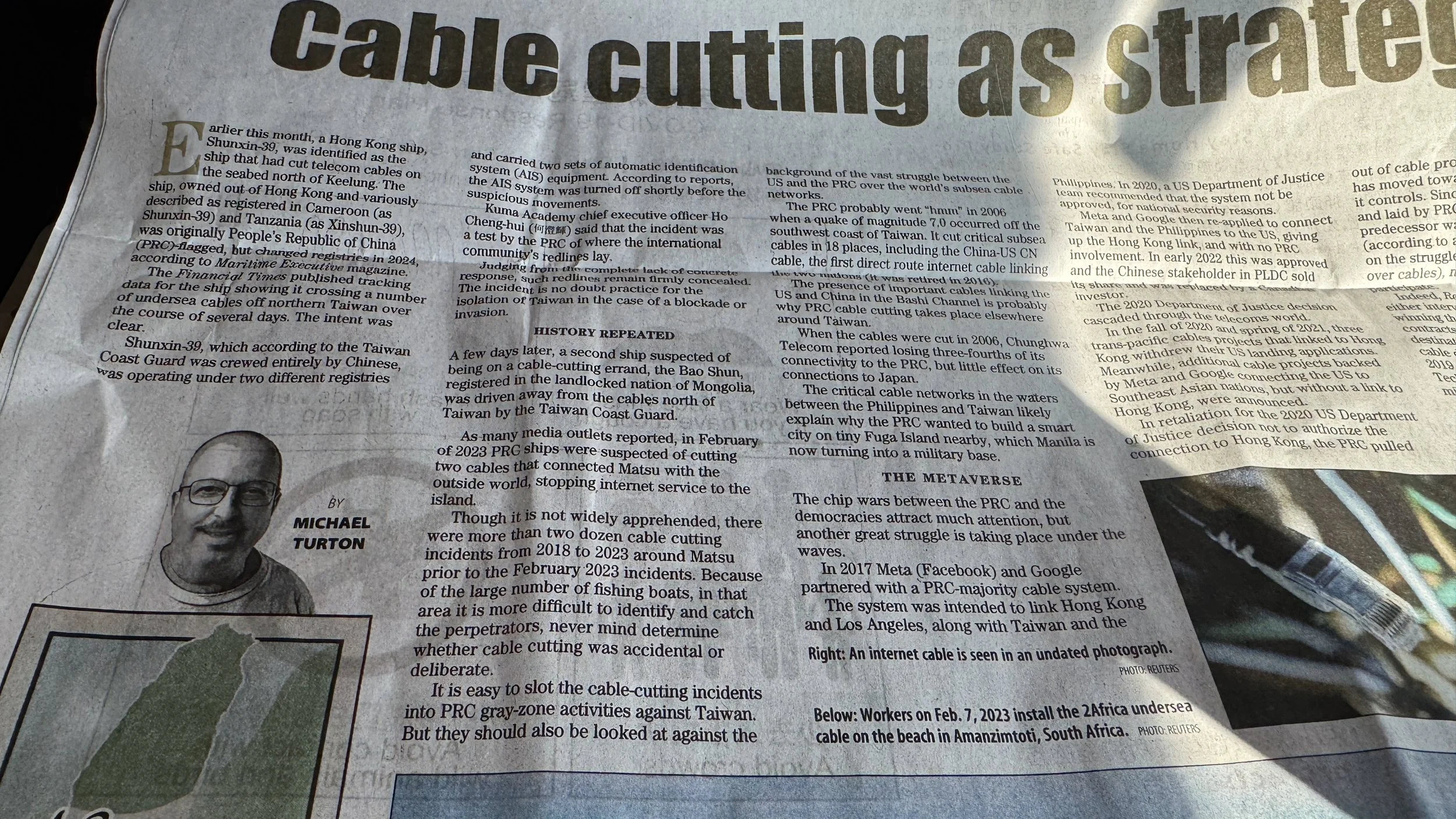 There have been numerous recent incursions into isolating areas in the North of Taiwan by cutting off their internet access via undersea cables.
