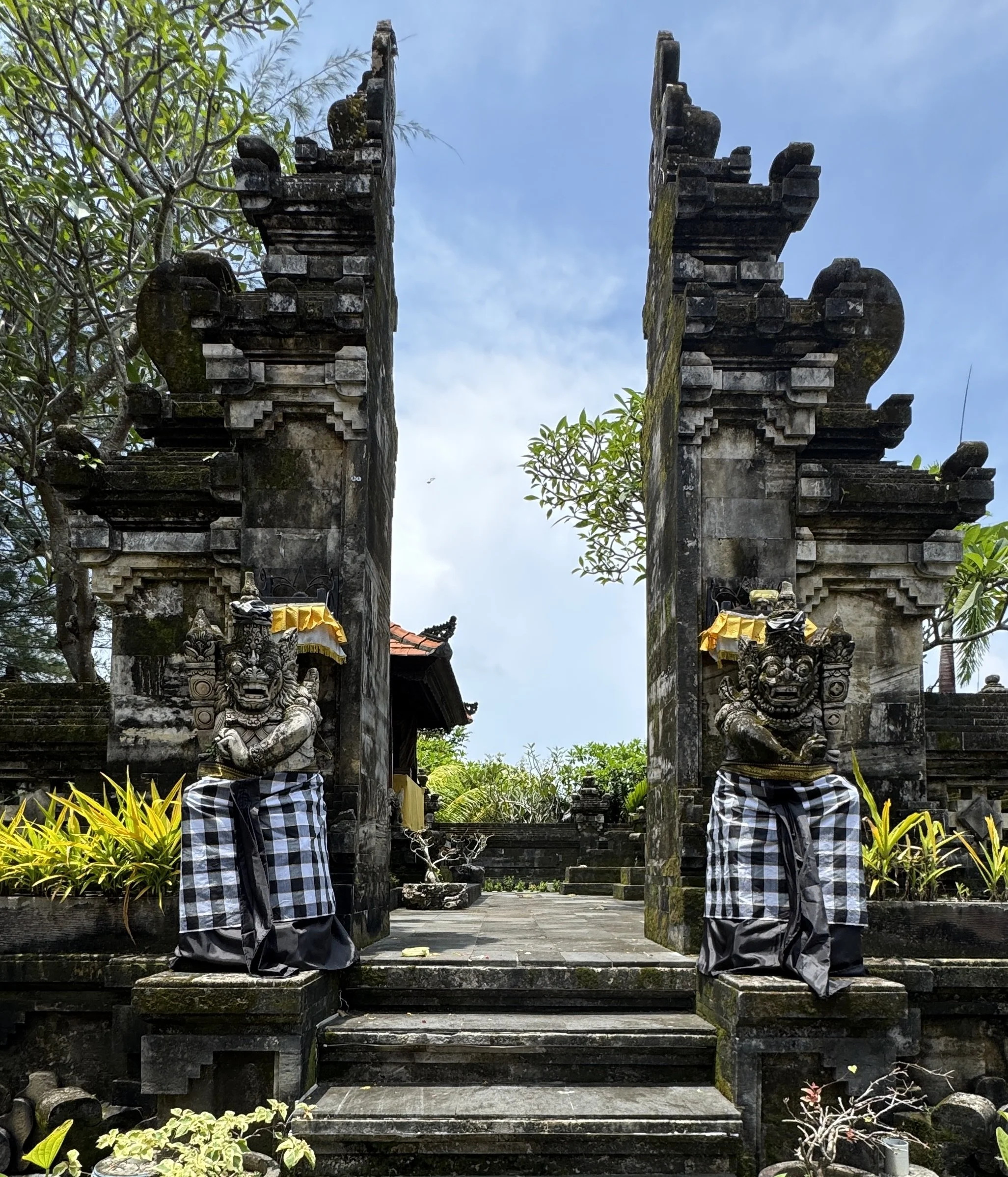 The abundance of Balinese Hindu temples with its intricate and unusual designs intrigued us immediately. The temples come in all shapes and sizes, but mainly they are large, very ornate compounds with several shrines, spires, and pavilions, one more beautiful than the next. About 80% of the Balinese are Hindus, opposite the official Indonesian religion of Islam. We learned that every family has their own temple. There are also village temples and then there are larger public temples.