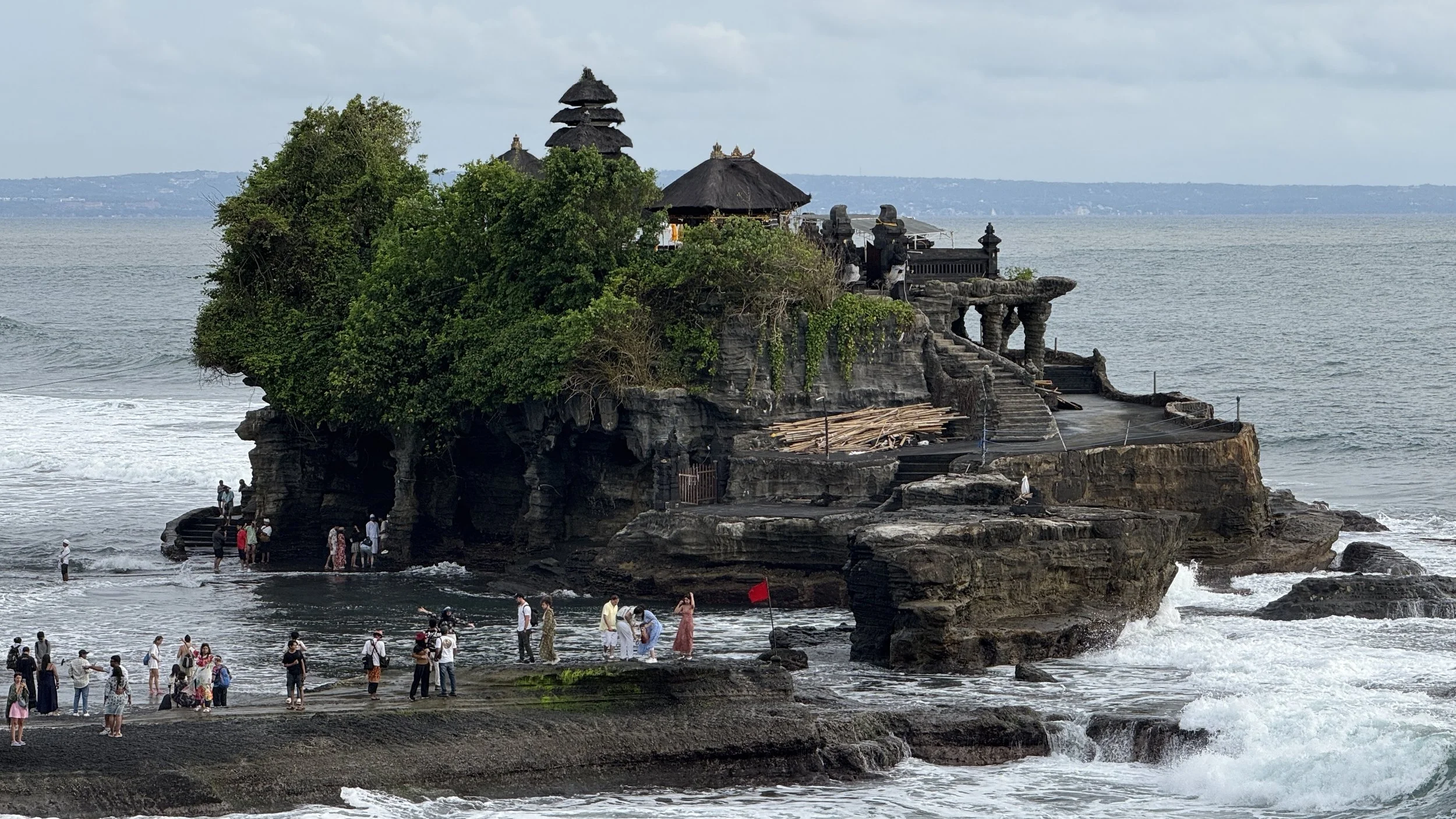 The other temple, Tanah Lot, sat on a rocky outcropping in the Indian Ocean. At high tide, it was surrounded by breaking waves; by low tide, usually around sunset, people were able to walk over the rocks to visit this famous landmark. It is one of Bali’s seven sea temples, forming a spiritual chain along the coastline to protect the island from evil spirits. It surely looked stunning, sitting on a massive rock, right in the ocean.