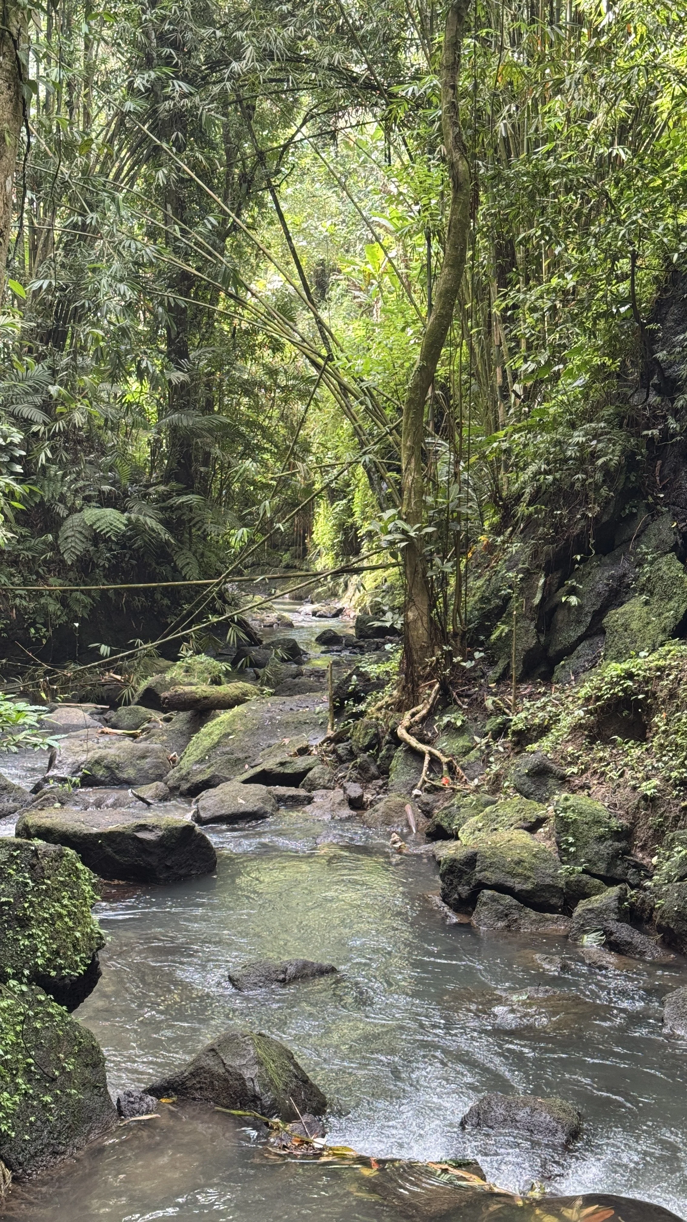 We saw many century-old ficus trees encased by strangler vines forming their own cluster of tree trunks, standing strong and independent. They play a crucial role in tropical ecosystems like this one, providing all year-round food aka figs for birds and animals as well as shelter in the hollow spaces and also refuge in the high canopy for many animals. Because of the density and the variety of plants, this jungle trek was the highlight of our time in Bali for me.