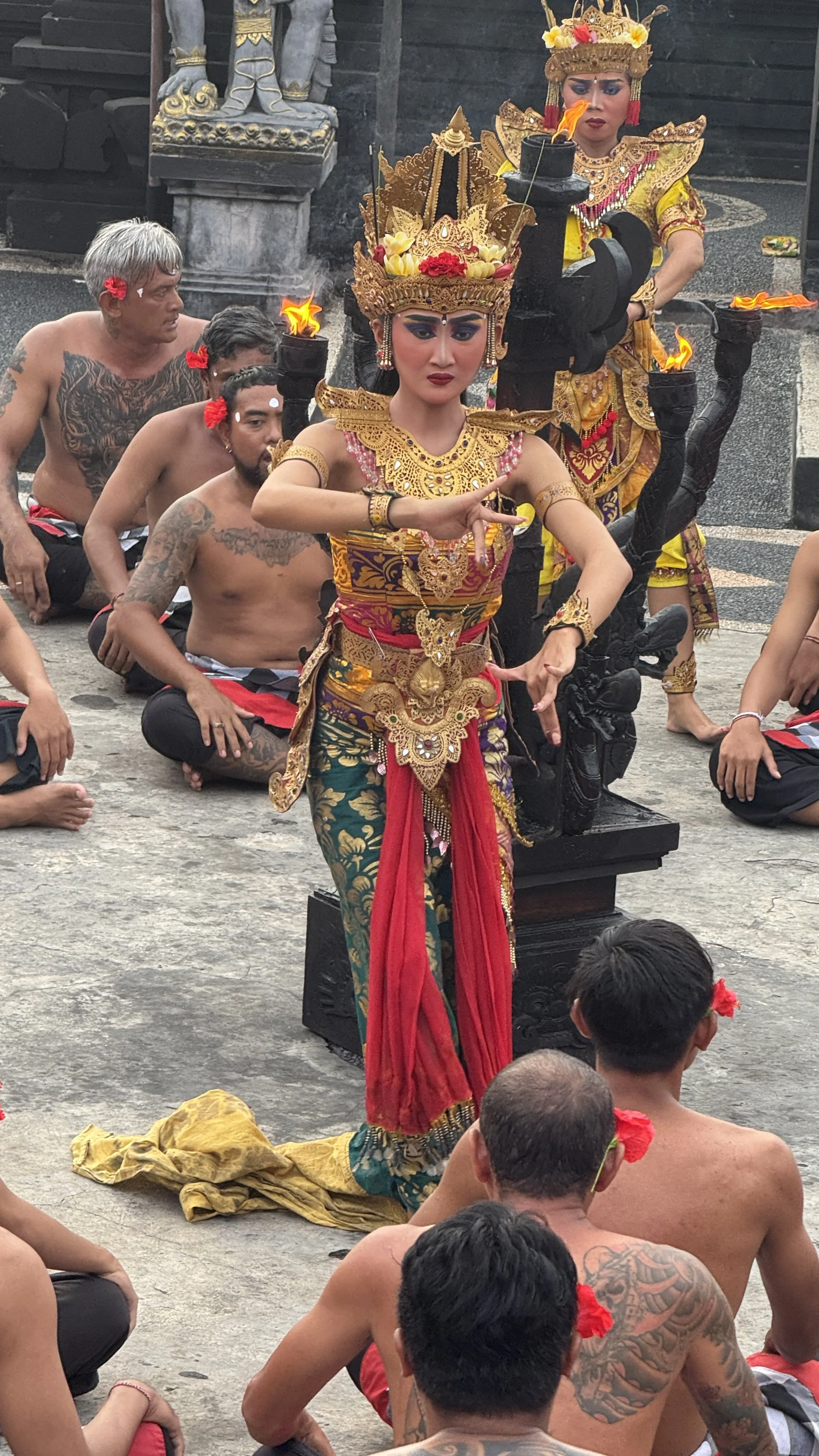 We joined a filled open-air arena to see a show with a Kecak Dance telling the story of the Ramayana, featuring rhythmic chanting and a thrilling fire dance finale. Although our expectations before the performance weren’t high, the show turned out to be interesting, unique, and enjoyable.