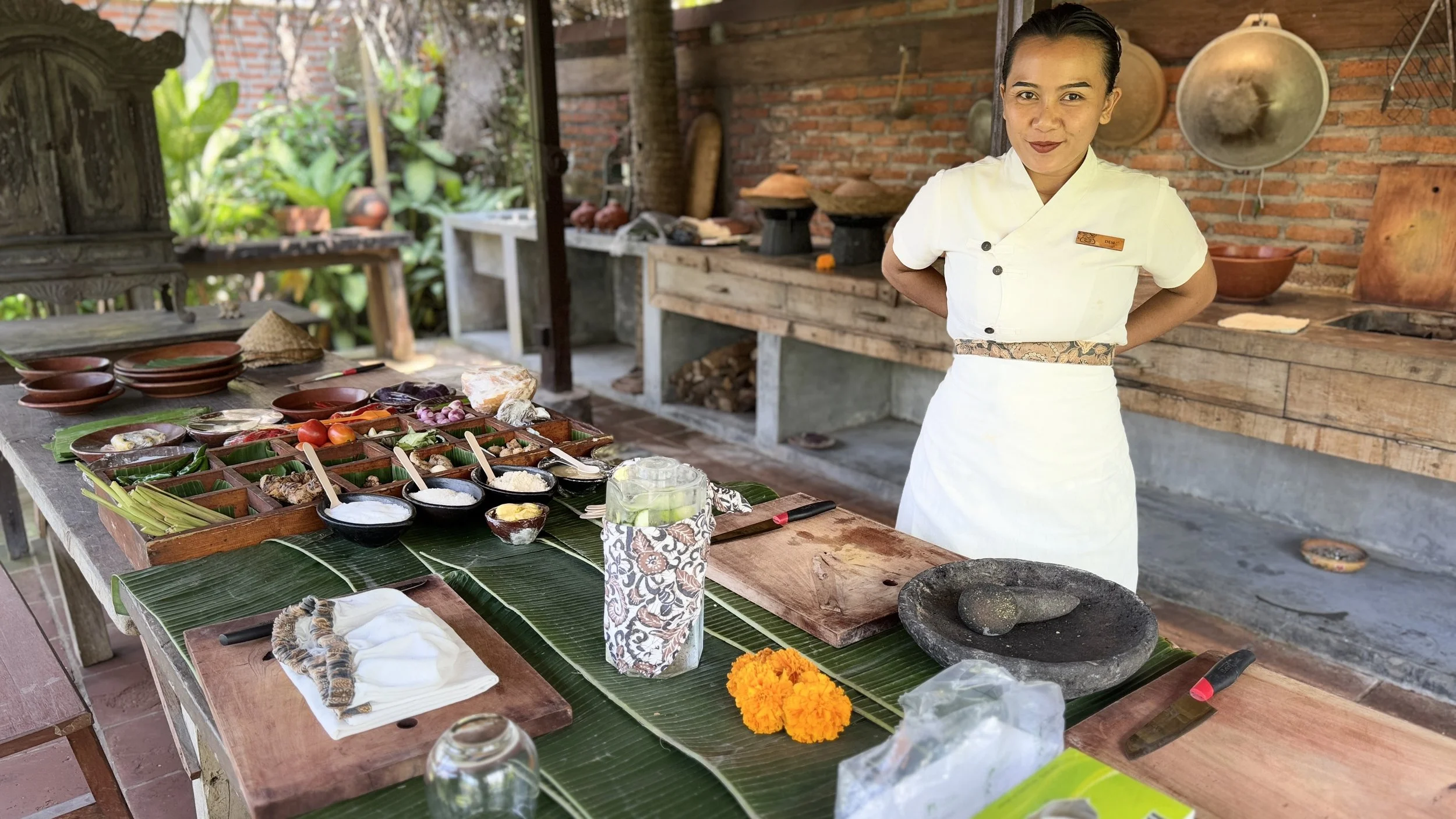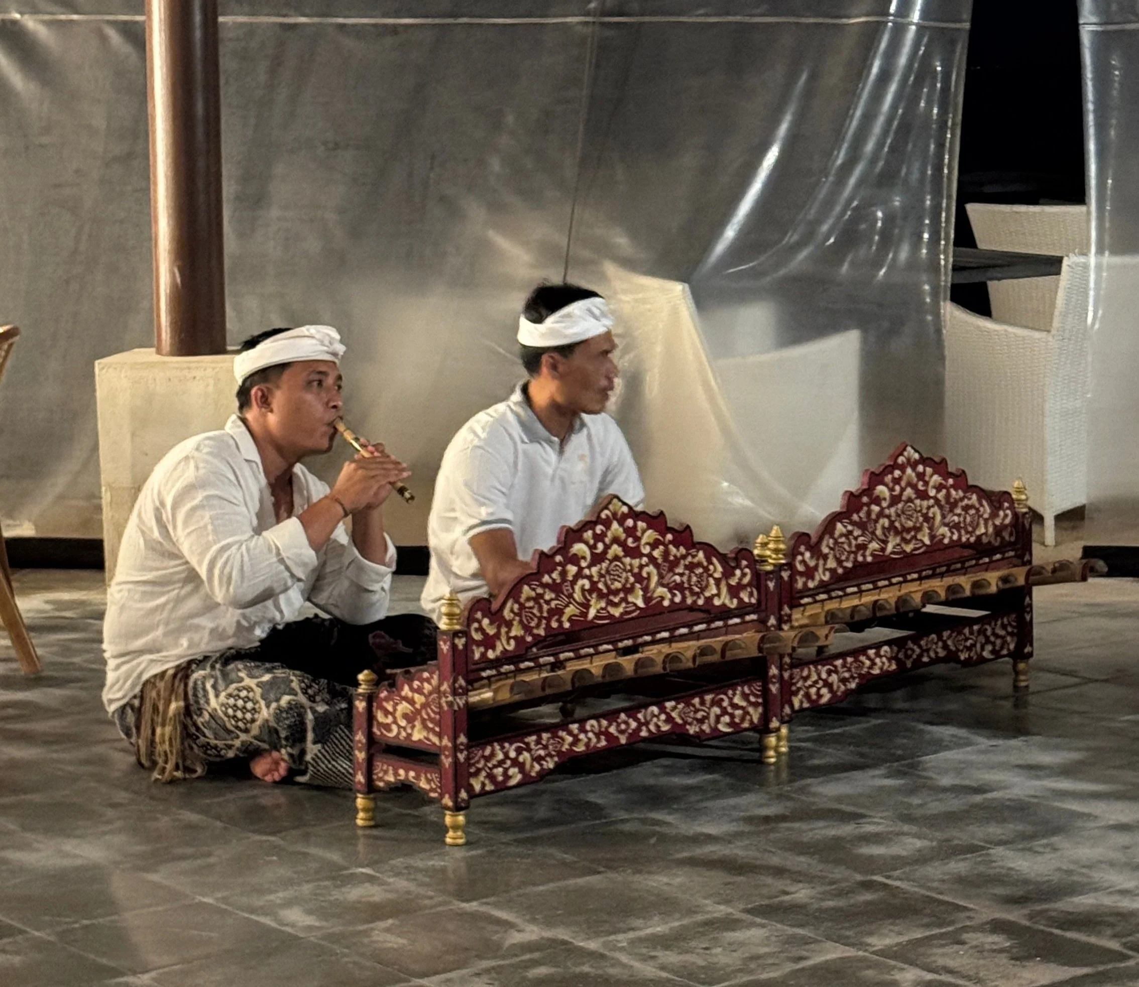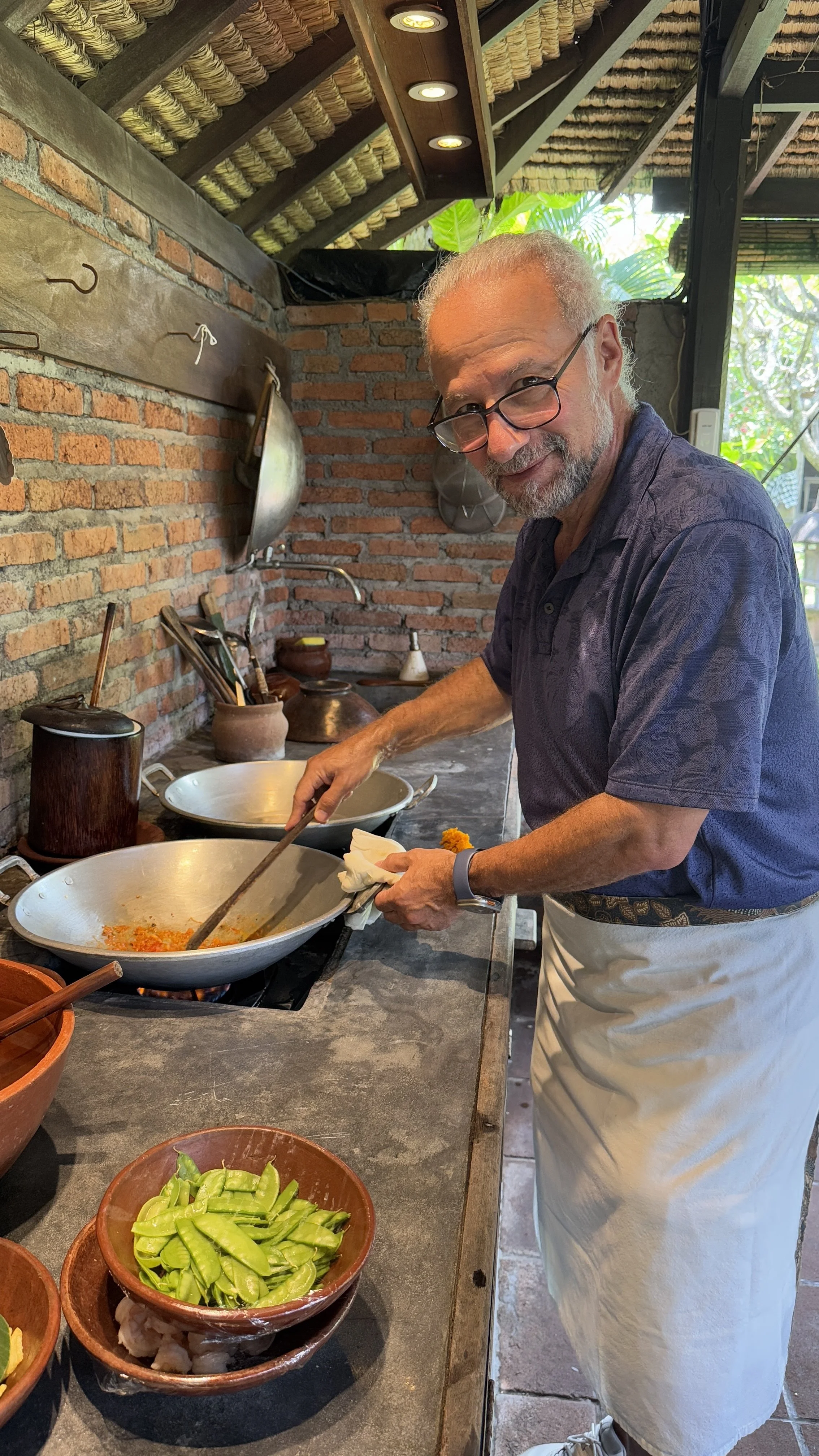 Indonesian dishes start (like Indian dishes) with the spices and other aromatics first cooked in hot oil and then following a sequence when to add other ingredients. We so enjoyed our time cooking as well as exploring the whole property, so we returned the following evening for a dinner with a performance of several Balinese dances and musicians.