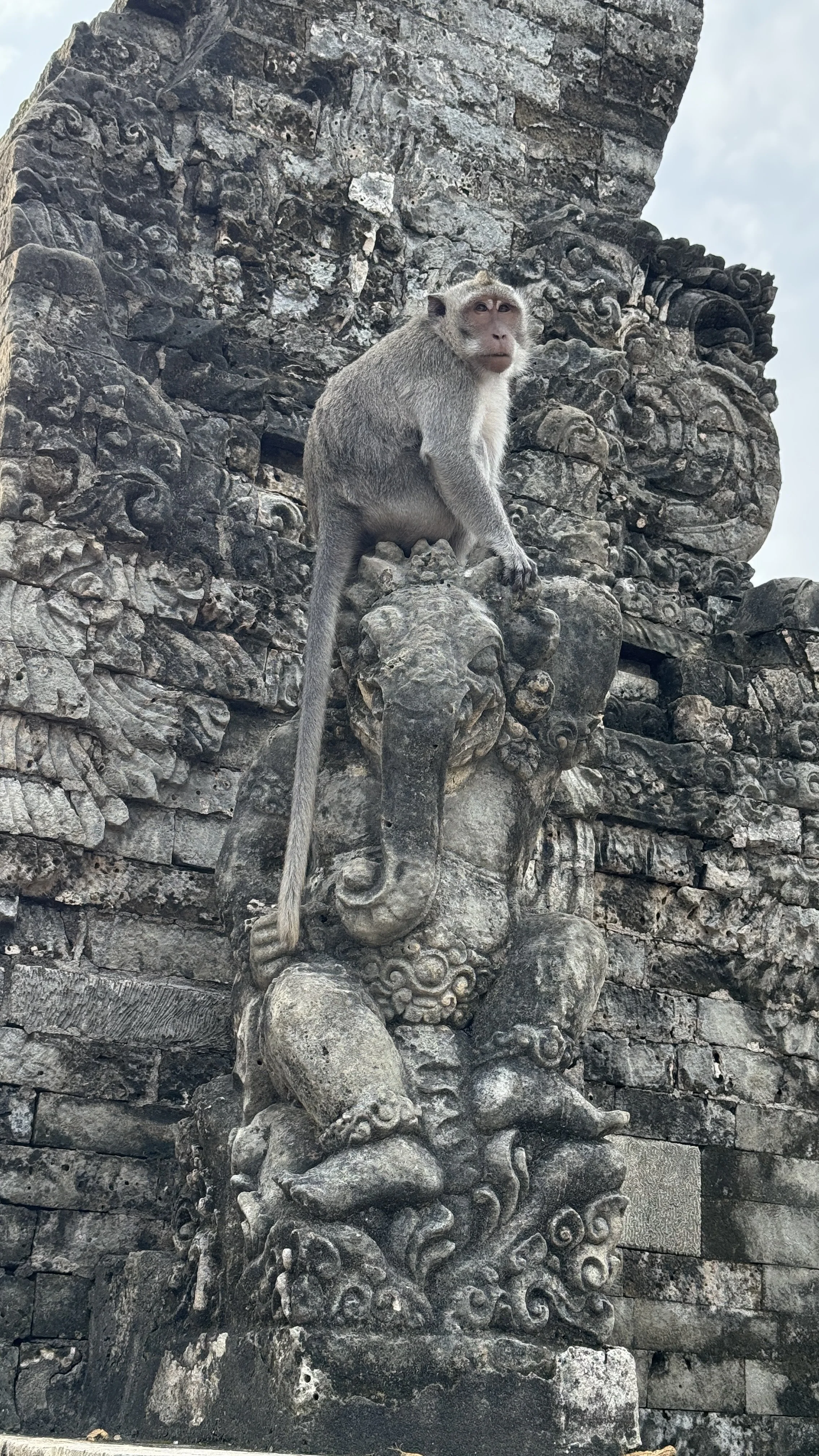 We visited the Uluwatu temple, one of Bali’s most iconic sea temples, sitting majestically on the edge of a high cliff overlooking the Indian Ocean.