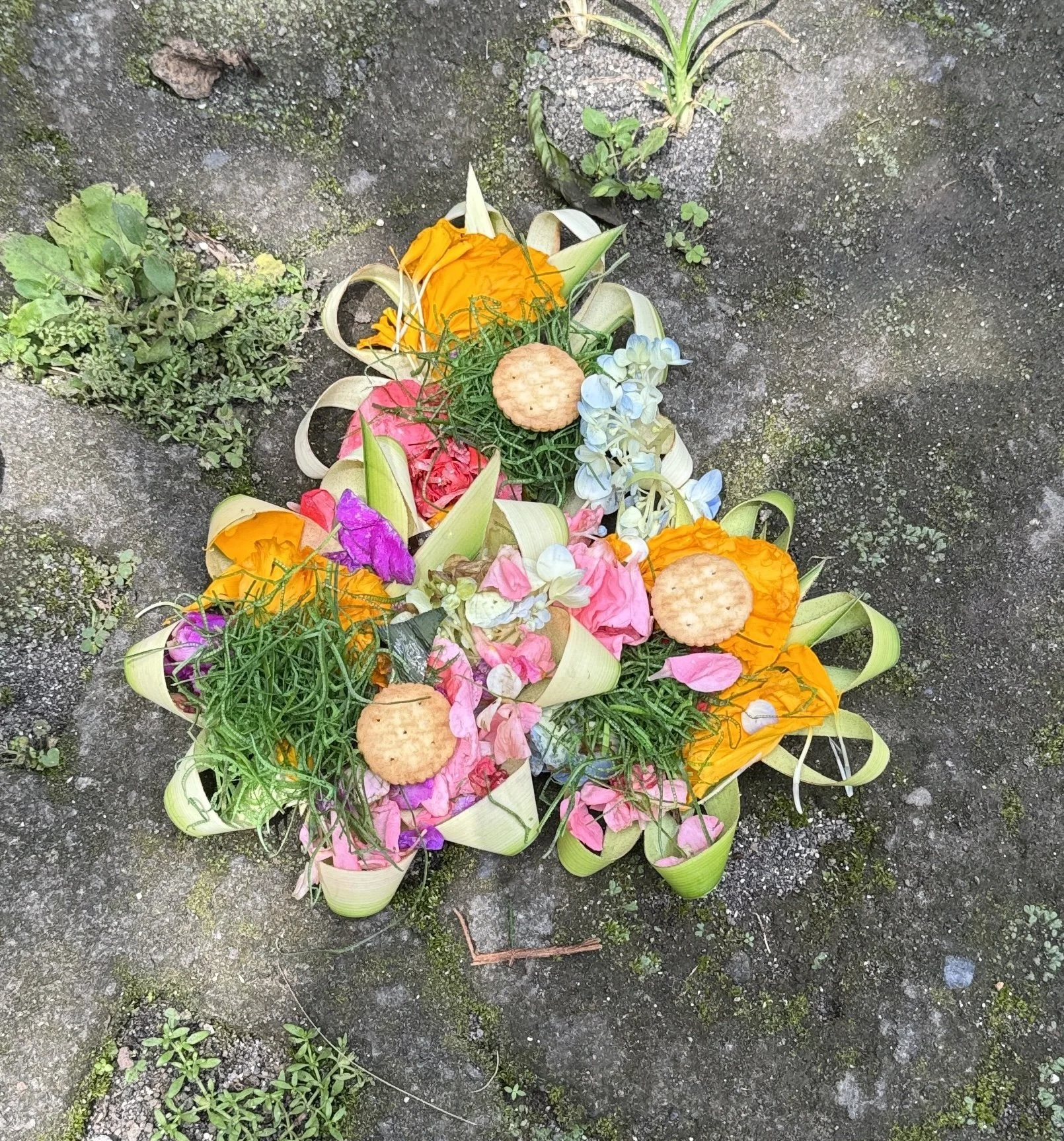 Those Canang Sari can be found everywhere: on the ground in front of a house entrance, shop or restaurant, sometimes in clusters of three or more little baskets.