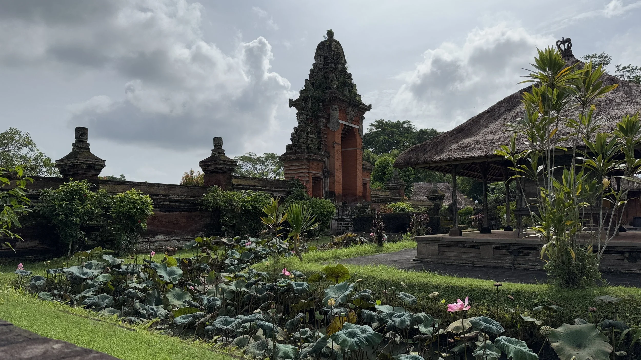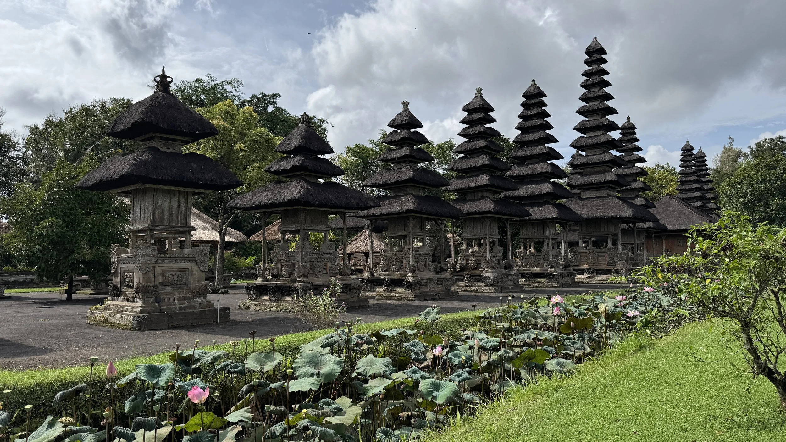 During our stay in Canggu, we visited two famous public temples. The first was the 400-year old Taman Ayun Temple, also called the Royal Water Temple of Bali, a Unesco World Heritage site. The huge area was surrounded by a moat filled with lotus flowers and water lilies, and having at the center many Meru towers, multi-tiered thatched-roof pagodas of various heights.