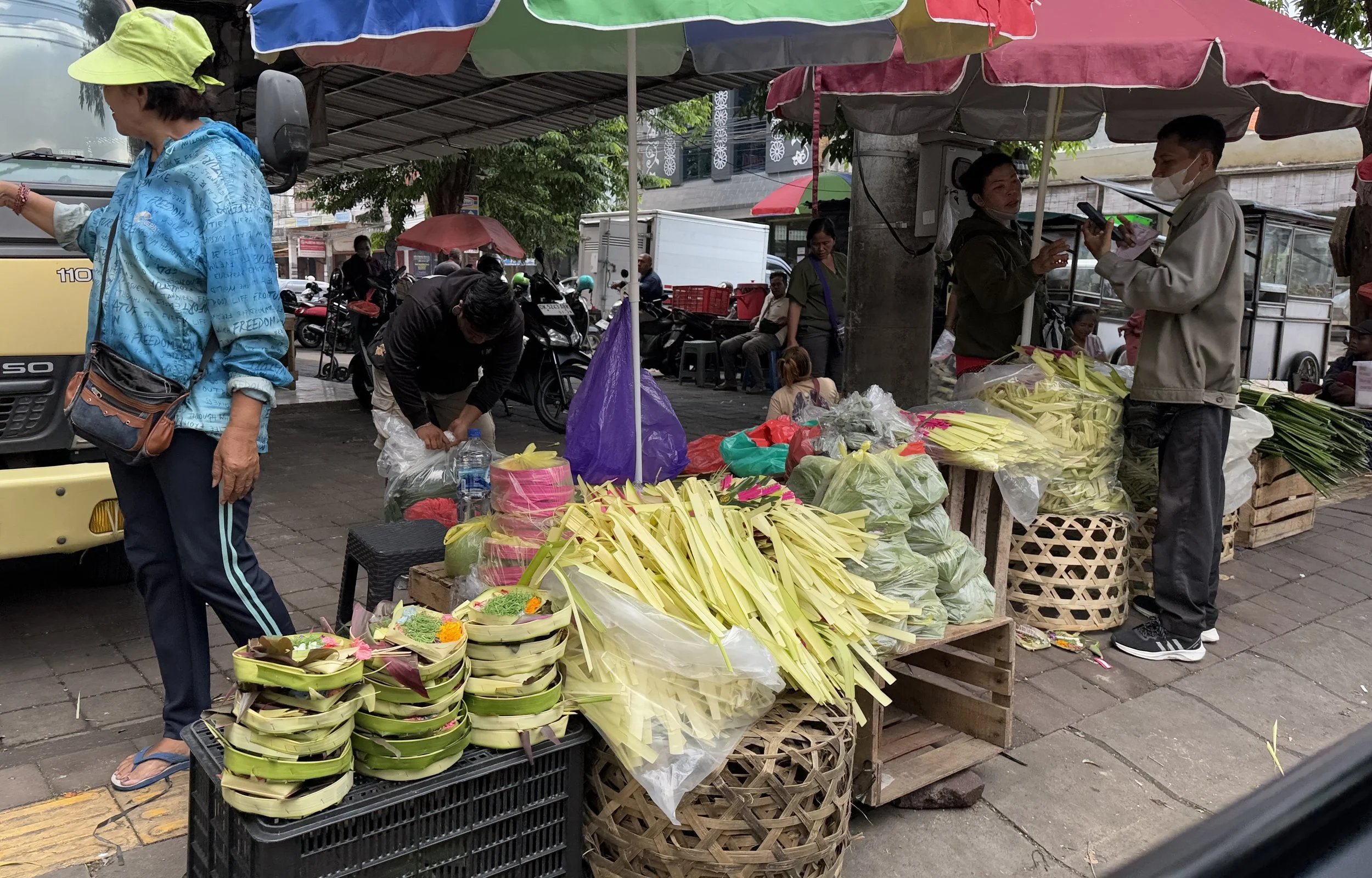 This stall sells the banana leaf baskets (left) and ingredients to make your own canang sari