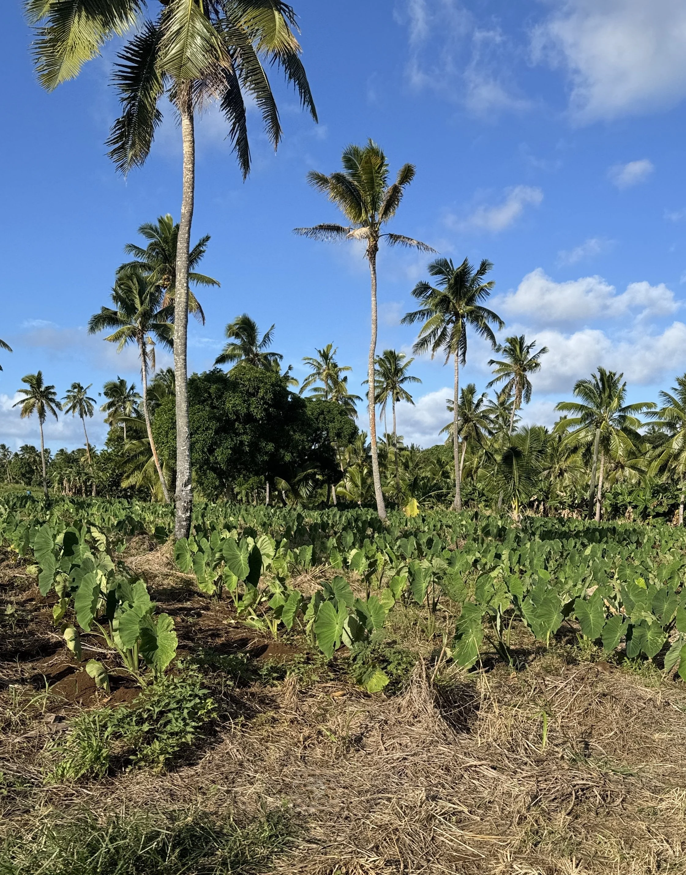 Fields of taro, a staple in the South Pacific, are planted everywhere, even among palm tree groves