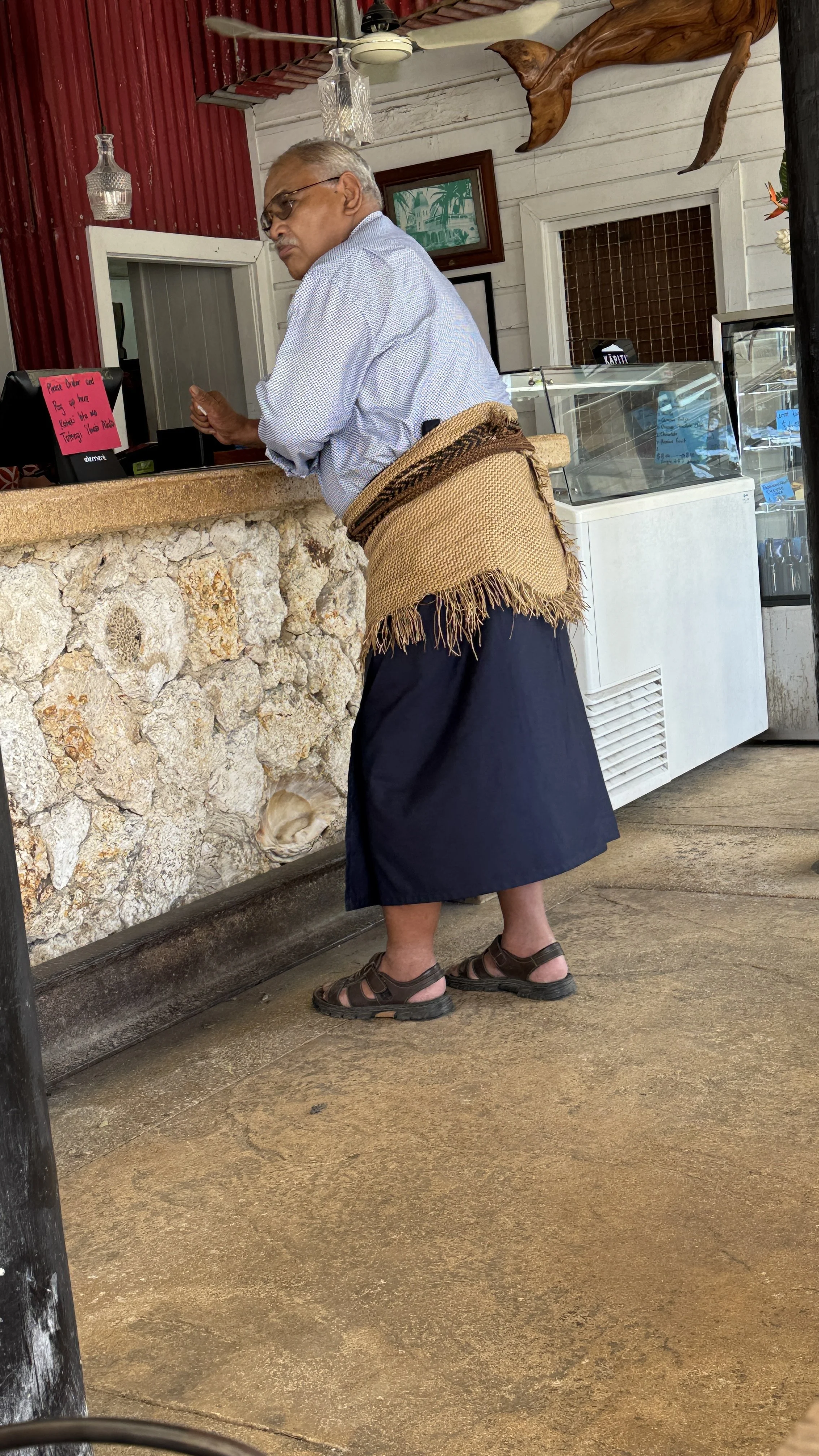 A government official with his ta’ovala (waist mat) typically worn as a symbol of respect and humility during formal events