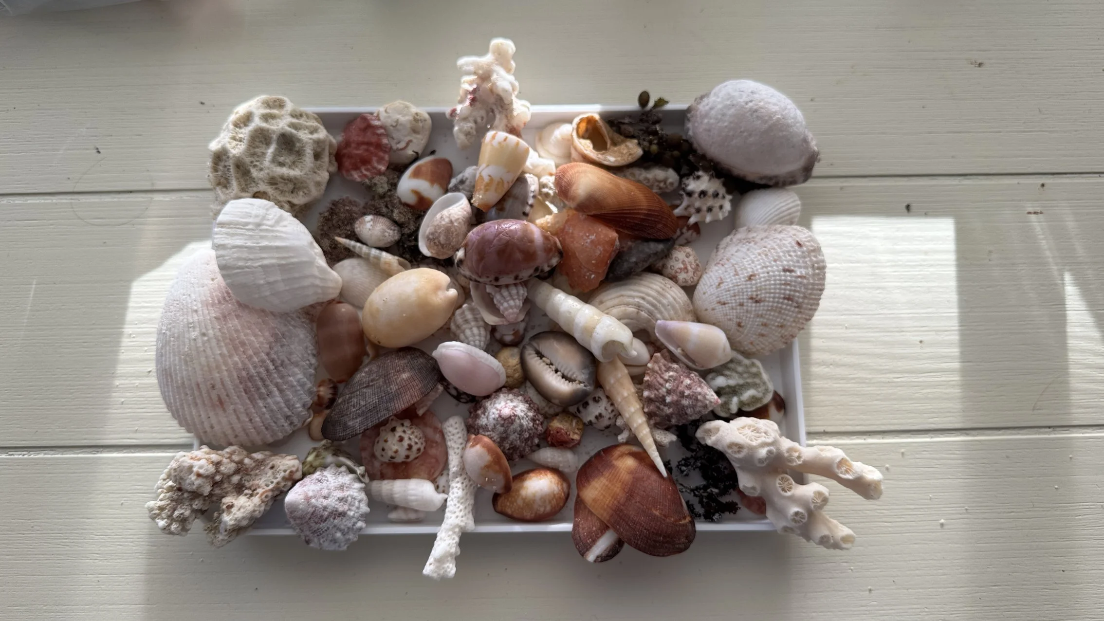 Collecting shells was actually a lot of fun, as we then looked at field guides and reef ID books in the resort library and tried to identify the names and different groups of shells, and ultimately, we hope to spot the mollusks underwater with their shells intact.