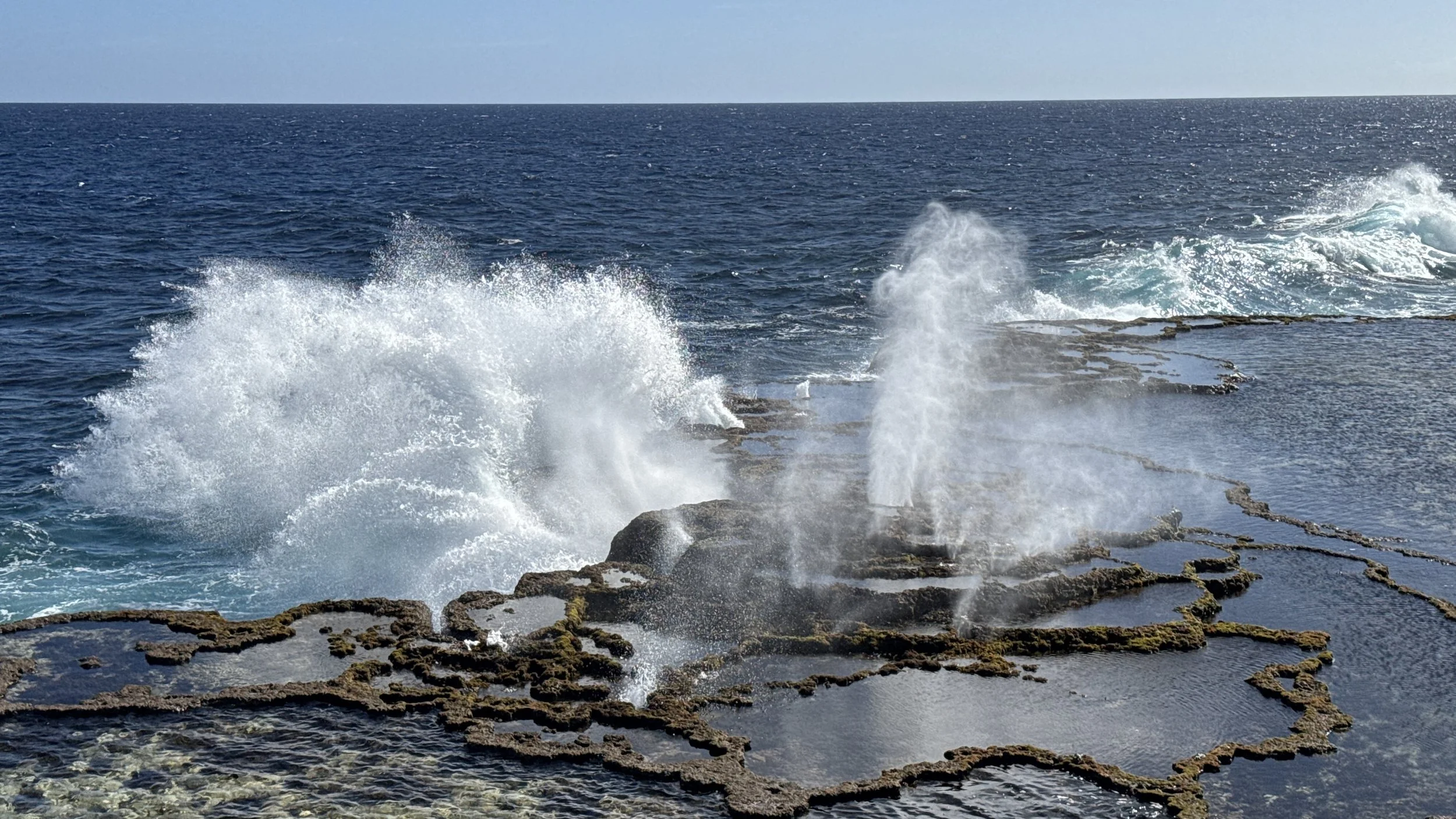 Not too far away, we observed an area with a natural row of blowholes blasting jets of water in the air.