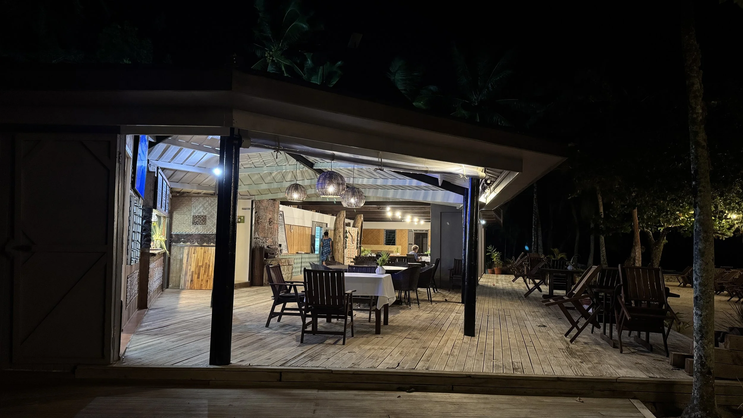At night we had absolute darkness around us for outstanding night sky viewing or observing the rather large hermit crabs on their way to building new burrows in the sand. After dinner, we would walk along the dark walkway looking at the silhouettes of palm trees against the milky way.