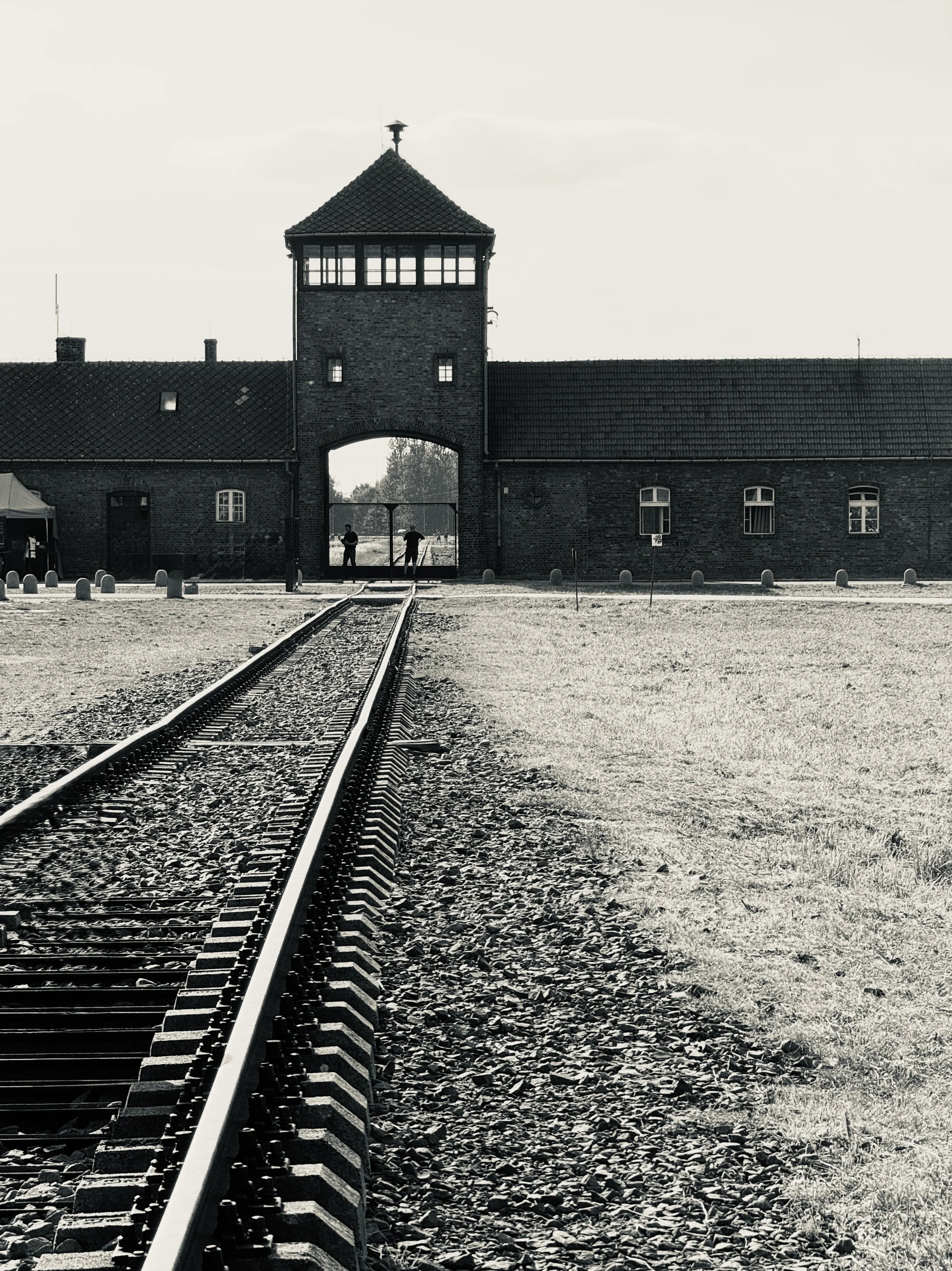 We were somberly walking along endless rows of barrack ruins, now only foundations with chimneys, as we listened to our guide talking gravely about the historic events, so that this enormous area was dotted with many very quiet groups listening with headphones to the horrors from when the camp was occupied. I don’t think we will ever forget those impressions.