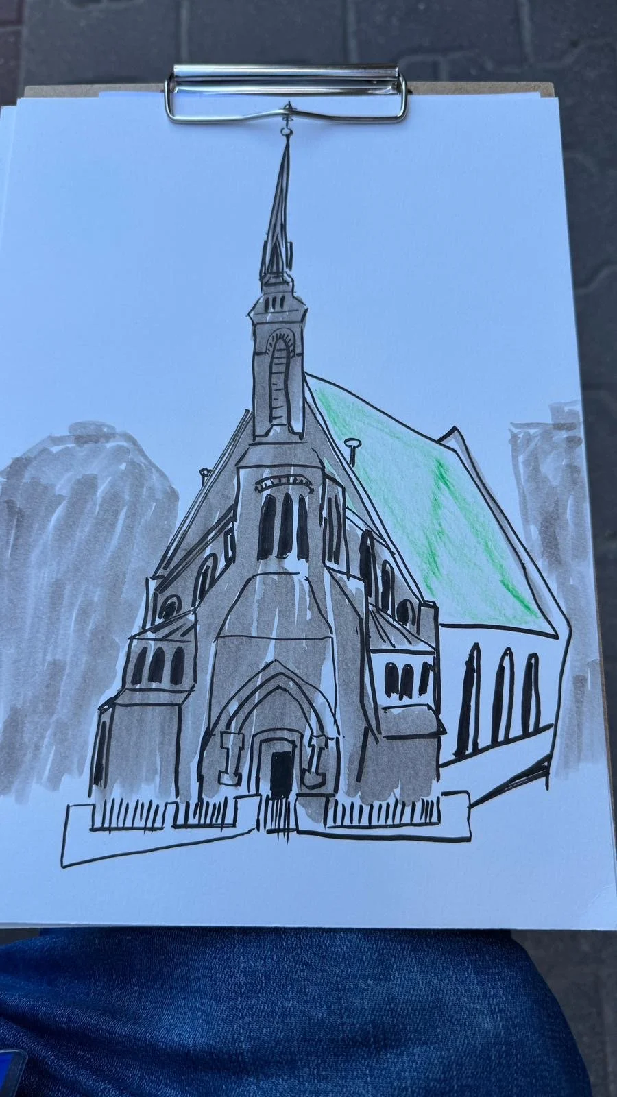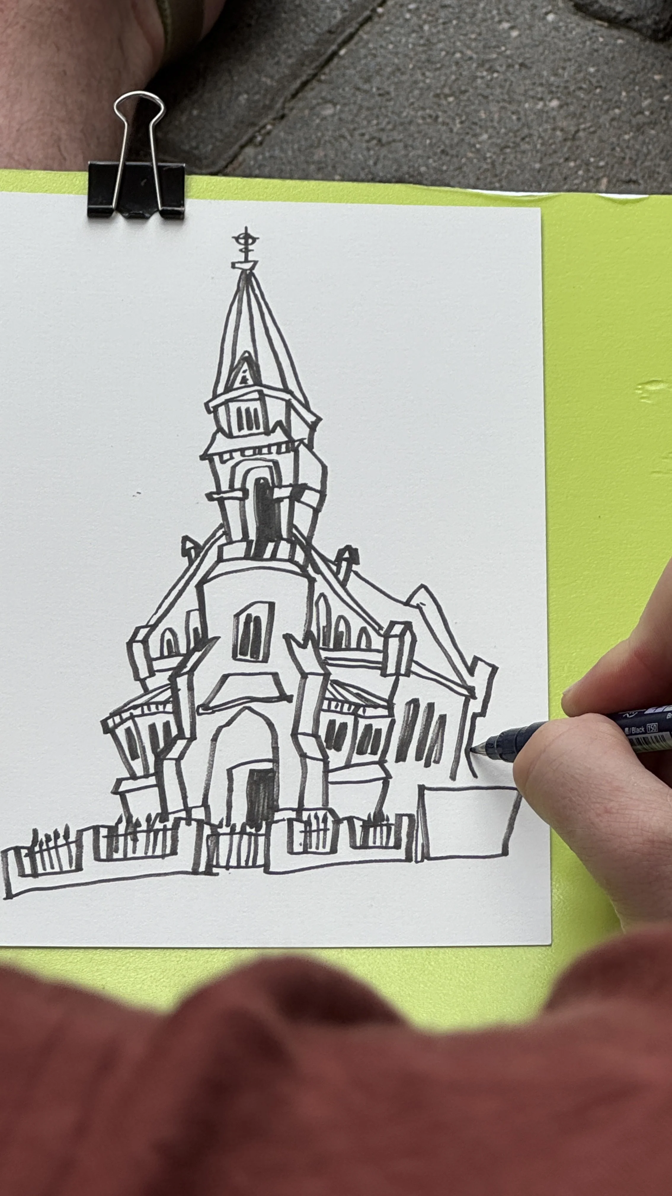 Urban sketching is a global movement existing since about 20 years, having started in Seattle and now has over 500 chapters worldwide. People who like to draw meet locally about once a month and together sketch surrounding buildings, markets or basically anything catching the eye. All are welcome, none are judged. Everyone sketches for their own enjoyment, to hone maybe their drawing skills, but not for anything other than personal pleasure.