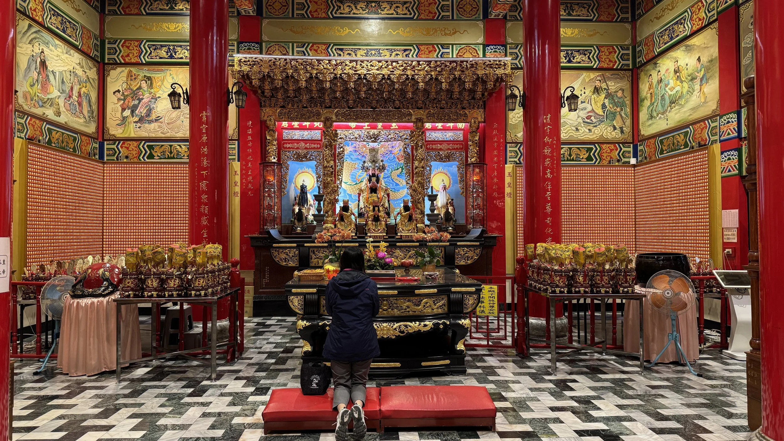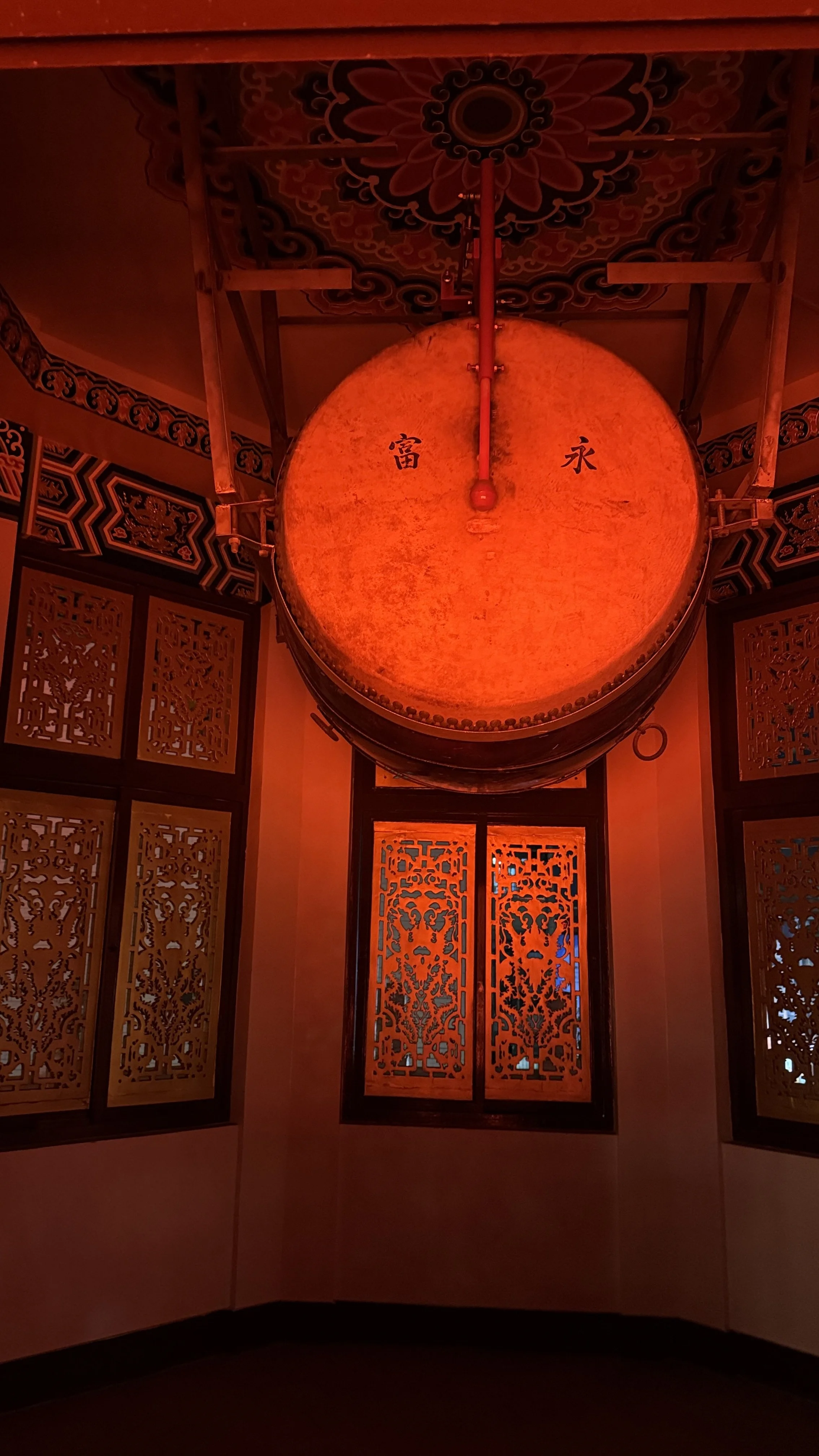 Night had fallen and the temple was mostly empty, but its beauty and uniqueness came through despite the cloak of darkness. The glowing red lantern array in the entry hall lit up both the drum and bell towers common to many Taoist temples in Asia. The many halls contained statues of deities and colorful decorations enchanting us. Some locals to whom this space held sacred significance knelt and prayed to the deities.