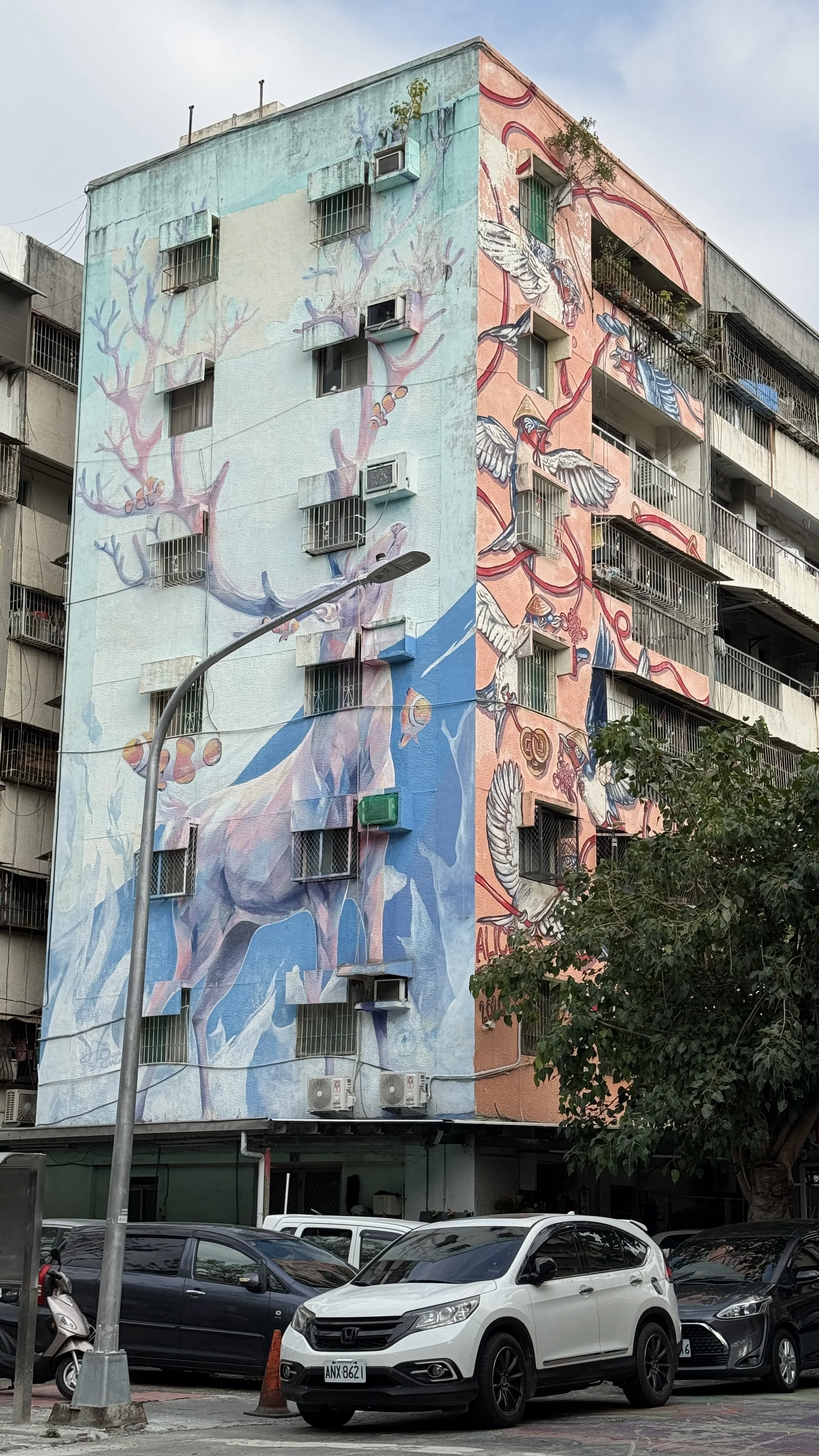 WeiWu MiMi Village is reminiscent of Rainbow village but on steroids. The street artwork spans apartment buildings and offices with paintings of whales, forests, or simple whimsy of much higher quality than Rainbow village in Taichung.