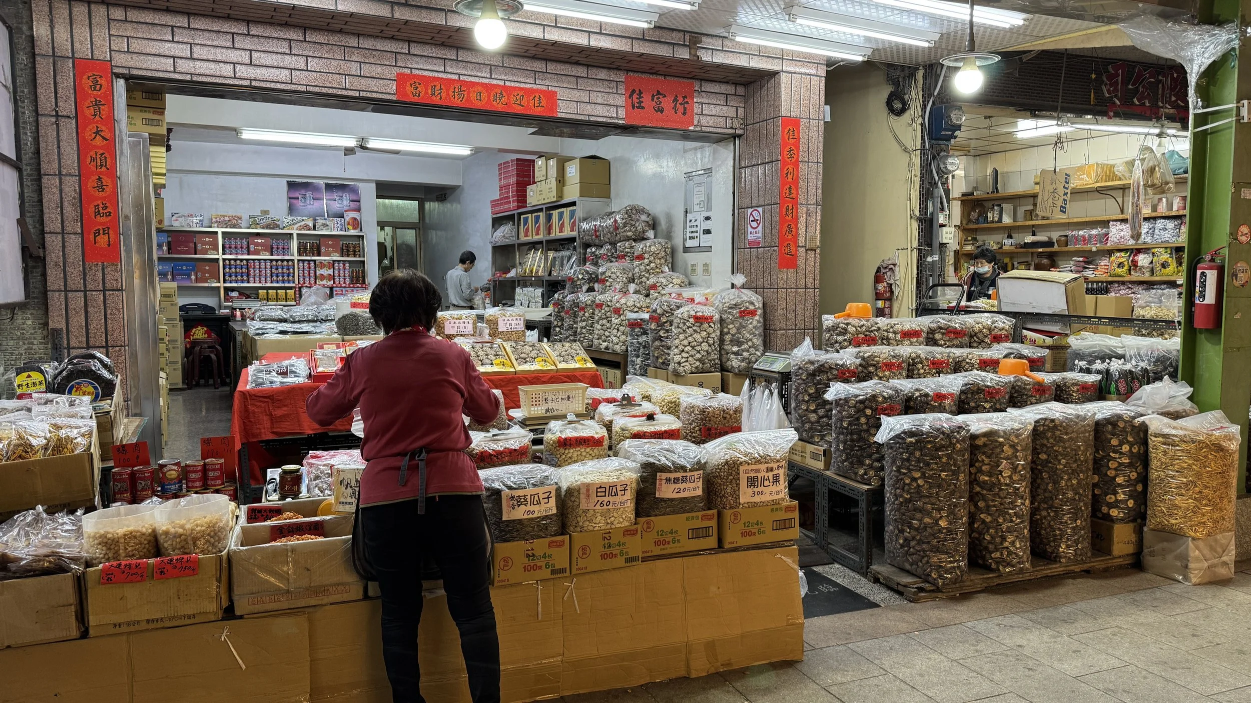 San Fong Jhong Street is a covered wholesale shopping street containing huge bags of dried goods where locals can buy their spices, dried mushrooms, nuts, herbs, dried fruit and other Taiwanese necessities (mainly for the older generations opposite the younger ones that prefer to shop in supermarkets.) We had heard about it and were in the neighborhood, so we walked along the covered street while motorcycles scooted past us in that narrow center lane. Covered or not, it was still an active street. Although it was a struggle for us to find something to buy, we ultimately settled on a bag of dried mango slices.